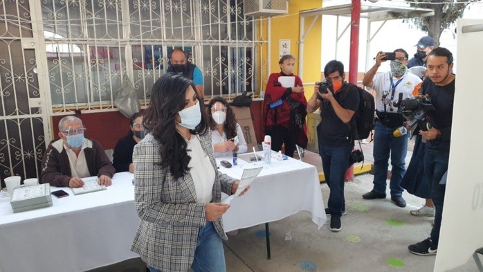 La candidata por Movimiento Ciudadano (MC) a la presidencia municipal de San Pedro Tlaquepaque, Citlalli Amaya, emitió su voto en casilla ubicada en la colonia El Tapatío, dónde actualmente radica.Aproximadamente a las 9:40 horas llegó Citlalli a su sección de votación con número 2548, ubicada en la calle Jorge 53 - 11, a su cruce con la calle Corregidora en el Jardín de Niños Nezahualcóyotl.Amaya llegó caminando acompañada de Manuel Romo, coordinador estatal de Movimiento Ciudadano. Ella vestía pantalón de mezclilla, blusa blanca y un blaizer en color negro s cuadros, mientras que el coordinador traía un chaleco naranja.Sobre las votaciones extraordinarias, la candidata dijo: “Segura estoy, tranquila de que los que mandan son los ciudadanos y agradezco la participación del IEPC de nueva cuenta por esta herramienta. La participación aún es temprana, espero que salgan y voten para decidir, espero que haya afluencia, está casilla en particular está tranquila, espero que haya más movilización”.Amaya también destacó que el Instituto Electoral y de Participación Ciudadana (IEPC) de Jalisco hasta el momento casi han abierto en su totalidad las casillas, solamente algunas no se han abierto por falta de algún funcionario.“Va muy bien el ejercicio, prácticamente ya va más del 95% de las casillas, todo bajo un orden natural de un proceso extraordinario en paz y tranquilo”, dijo.Por su parte, Manuel Romo señaló que estarán esperando los resultados de la Elección Extraordinaria de Tlaquepaque en las oficinas de Movimiento Ciudadano en la colonia Americana en Guadalajara.Citlalli Amaya pasará un momento con su familia y de ahí estará al pendiente de las elecciones.AC