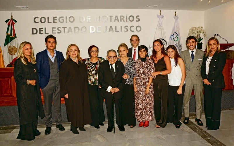 Gracias a su aportación al campo de la ciencia jurídica, la divulgación y difusión del pensamiento crítico, así como la formación académica que brinda a generaciones de profesionales del Derecho, el Instituto de Estudios Jurídicos de Jalisco otorgó la investidura de Doctor Honoris Causa al Notario Público Número 20 de Guadalajara, Adalberto Ortega Solís. Al evento, celebrado el pasado 25 de septiembre, asistieron, también miembros del Colegio de Notarios de Jalisco.Ortega Solís expresó su gratitud en un emotivo discurso.“Este Instituto de Estudios Jurídicos no solamente me dio mi segundo doctorado, sino que, ahora, me designa Doctor Honoris Causa. El doctorado Honoris Causa nace desde la Edad Media, en las universidades de esa época [...]. Agradezco a mis hijas, a mis nietos, a mi yerno, a mi hermano”. También recordó a su hermano Miguel Ángel, su hermana Themis Elena y a su esposa Margarita.“Este homenaje que me han hecho en este instituto se refleja por el homenaje que recibí hace años cuando era rector don Tonatiuh y que me dieron el título de maestro emérito. Todos ustedes, de alguna u otra manera, han sido, en momentos precisos, mis alumnos, y de eso me siento muy orgulloso”, añadió.Como parte de la investidura del Doctorado Honoris Causa, don Adalberto recibió los guantes blancos: un gesto simbólico que representa la pureza, la distinción y la valía excepcional; así como una espada, que no es un arma de combate, sino un arma “intelectual” o “espiritual” que simboliza la defensa de la verdad, la rectitud y la justicia a través de la investigación y el conocimiento.Adalberto Ortega, originario de Colotlán, Jalisco, ha sido defensor del derecho romanista que da solidez a la tradición jurídica mexicana, pues durante la negociación del Tratado de Libre Comercio de América del Norte (TLCAN) evitó la derogación de importantes figuras que dan seguridad en las transacciones en México, como la fe pública dentro del notariado latino. El galardonado se graduó como abogado en 1959 y seis años después se le nombró Notario Público de Guadalajara, profesión jurídica en que ha ejercido como presidente del Colegio Nacional del Notariado Mexicano A.C. y del Colegio de Notarios de Jalisco.Destacan sus cargos como profesor de Derecho Laboral y Derecho Civil en la Escuela de Graduados en Derecho Civil, docente de la maestría en Derecho Privado, de los cursos de Posgrado de Derecho Laboral y Derecho Privado, así como coordinador de cursos de Posgrado de Derecho Notarial.Resalta su participación en colectivos académicos, como la Academia Mexicana del Trabajo y Previsión Social y Academia Mexicana de Derecho Notarial. Miembro fundador del Instituto Jalisciense de Investigaciones Jurídicas A.C., además de desempeñarse como su presidente en la actualidad, y ha ocupado diversos cargos directivos dentro de la UdeG: presidente del Consejo Social General, director de la División de Estudios Jurídicos del Centro Universitario de Ciencias Sociales y Humanidades e integrante del Consejo General Universitario, entre muchos otros. Es representante ante el Consejo Económico y Social del Estado de Jalisco para el Desarrollo y la Competitividad y vicepresidente académico de este organismo ciudadano.En el marco de la entrega de la investidura Doctorado Honoris Causa (llevada a cabo por el Instituto de Estudios Jurídicos de Jalisco) a don Adalberto Ortega Solís, quien ostenta una trayectoria de 60 años como notario y 66 como abogado, José Luis Leal Campos, presidente del Colegio de Notarios, resaltó las diferentes facetas de la vida profesional del homenajeado, con las que ha dejado huella en alumnos y colegas que han compartido con él y a quienes ha formado a lo largo de su extensa carrera, ya que ha sido un ejemplo de rectitud, legalidad y profesionalismo.En nombre de la comunidad jurídica de Jalisco, Leal Campos agradeció a don Adalberto la formación que les ha brindado, dado que gracias a su labor y trayectoria, las generaciones del futuro pueden soñar con un estado de derecho, con justicia y con un país mejor.“Siempre diremos que usted es un gran ejemplo que nos motiva a seguir adelante. Felicidades y mi reconocimiento en nombre de toda la comunidad jurídica, en particular del notariado jalisciense y del notariado nacional. Felicidades, maestro”, concluyó.Por su parte, Arturo Zamora Jiménez, coordinador de la Reforma Judicial en Jalisco, reconoció que el galardonado ha sido “un faro y una luz” para los profesionales del derecho en la entidad a lo largo de más de medio siglo, y este nombramiento es una muestra de la importancia de don Adalberto en el ámbito notarial y jurídico del estado.Asimismo, el coordinador destacó los 60 años de carrera de don Adalberto en el magisterio y reconoció que muchos todavía “seguimos aprendiendo de él”.