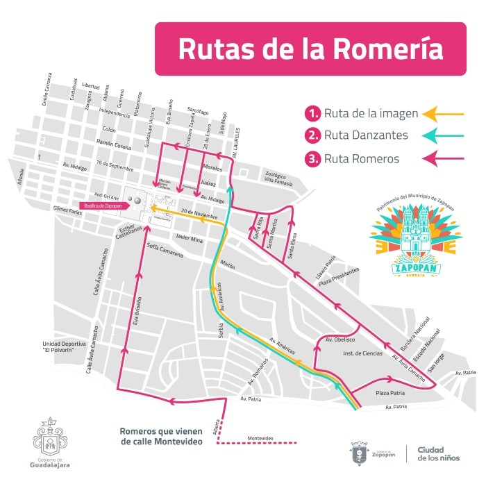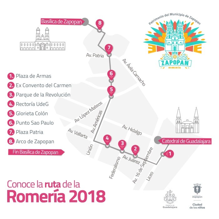 A una semana de que inicie la Romería de la Virgen de Zapopan, autoridades municipales de Guadalajara y Zapopan detallaron que para este año, se espera la asistencia de hasta dos millones de personas y unos 35 mil danzantes.En el municipio de Guadalajara las acciones comenzarán desde el jueves 11 de octubre, con la celebración de la misa en la Catedral de Guadalajara, para iniciar con el recorrido que por cuarto año consecutivo, circulará por Av. Américas. En este año circularán por Av. Hidalgo hasta Liceo, Av. Juárez hasta Av. Américas y de ahí hasta Av. Patria para arribar a la Basílica de Zapopan.Además los alcaldes de municipales recordaron a la ciudadanía que los establecimientos como tiendas de autoservicio, abarrotes y licorerías, no podrán vender alcohol al público; sólo los restaurantes tendrán permitida la venta de estas bebidas previo y durante la celebración con la condición de que sean consumidas al interior del establecimiento.Para resguardar la seguridad de los asistentes, alrededor de dos mil 600 elementos de seguridad de 18 dependencias brindarán apoyo, así como los DIF de Zapopan que darán atención a las personas extraviadas. También se habilitarán zonas de hidratación, casetas de baño y cinco estaciones del transporte público en la Villa Maicera.Por su parte, Óscar Villalobos coordinador de la Secretaría General explica que para el municipio de Guadalajara se permitirá instalación de 366 comerciantes en el Centro de la Ciudad de alimentos que no necesiten el uso de gas LP. Por su parte en el municipio de Zapopan permitirá a al menos 600 comerciantes realizar sun labores de comercio. Los permisos serán entregados 72 horas antes de la celebración religiosa, explicó el alcalde. Pablo Lemus, agregó que espera que este año sea posible que la Romería sea considerada Patrimonio Cultural de la Humanidad ya que se encuentra registrada ante la Organización de las Naciones Unidas para la Educación, la Ciencia y la Cultura (UNESCO por sus siglas en inglés).NM