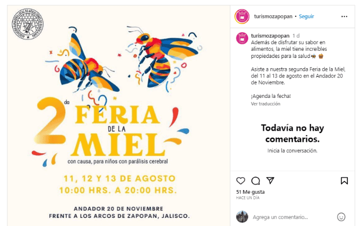 La miel es uno de los productos predilectos por todos, pues puede agregarse a casi cualquier comida. Si te encanta probar distintos tipos de mieles, sobre todo aquellas que son cien por ciento naturales, no puedes perderte este evento que llegará a La Perla Tapatía.Durante el marco del Día de las Abejas, que se festeja el 17 de agosto se realizarán distintas actividades para honrar y visibilizar la importancia que tienen los polinizadores en nuestra vida diaria; entre ellas, la Feria de la Miel 2023.El próximo 11, 12 y 13 de agosto a partir de las 10:00 horas hasta las 20:00 horas se realizará la Feria de la Miel 2023 en el Andador 20 de Noviembre, justo en frente de los Arcos de Zapopan, en Jalisco.En la feria encontrarás distintos alimentos hechos a base de la miel, así como artículos de higiene, incluyendo jabones, cremas y shampoos.Otra de las amenidades que encontrarás es terapia con apitoxina, una técnica alternativa que ayuda a aliviar dolores a base de piquetes de abeja. Ésta será una experiencia única, si te gusta experimentar con la médicina alópata.Además, gracias a la Asociación Ganadera Local de Apicultores de Guadalajara, podrás conocer información importante para aprender más sobre las propiedades de la miel.No te pierdas esta increíble oportunidad de disfrutar y aprender sobre la miel y sus propiedades.
