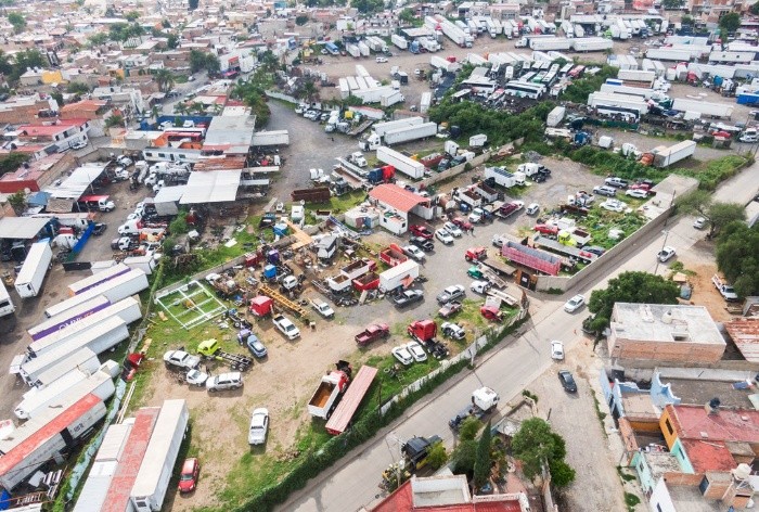 En operativo conjunto de la Fiscalía del Estado de Jalisco y Guardia Nacional en una bodega en la colonia Salvador Portillo, en Tlaquepaque, luego de un cateo en el que se inspeccionaron un total de 54 vehículos, 32 resultaron con irregularidades en sus placas o números de serie y siete con reporte de robo.Encabezado por la Unidad de Investigación de Robo a Vehículos de Carga Pesada, el operativo se realizó por atraco previo a un tracto camión marca Kenworth, color tinto, modelo 2008 y cuyos datos de prueba permitieron dar con su ubicación en la calle Tamiahua número 468, a su cruce con calle De la Rosa, en la colonia citada, por tal motivo se solicitó la orden de cateo a un juez de control.Con el respaldo de peritos del Instituto Jalisciense de Ciencias Forenses en materia de autenticidad automotriz, se logró la identificación de la totalidad de las unidades, mismas que fueron aseguradas por contar con reporte de robo o alguna irregularidad.Entre los automotores se encuentran una camioneta Nissan NP300, en color blanco; una camioneta Mazda CX3, modelo 2019 y en color rojo; una Dodge Ram 3500, color negro, sin placas de circulación; una Toyota Rav4, color blanco y de modelo 2021; un tracto camión Kenworth tipo Tracor, en color blanco; una Chevrolet Tahoe, color plata y un Kenworth color negro, sin laminillas, ni engomado y sin placas de circulación. También, un tracto camión tipo volteo Kenworth, color gris; un tracto camión de la marca International; otro International tipo grúa, color blanco y de modelo 2013, con placas del estado de Oaxaca; un Jeep Gladiator modelo SD, color gris; una camioneta Jac en color azul, sin placas de circulación y con número de motor borrado.Otros vehículos que fueron asegurados por esta representación social son una Ford tipo F-450, modelo 2020 en color blanco; un Mazda 3, modelo 2016, blanca, remarcada y con placas sobrepuestas; un tracto camión Volvo, en color rojo, sin placas de circulación y sin engomado; un Volkswagen Jetta Sport, color rojo, sin placas y con reporte de robo y una Honda CRV modelo SD, en color blanco.Además, se lograron asegurar una Toyota Hilux modelo 2020 en color plata, con placas sobrepuestas; un vehículo Audi Q8, modelo SD, remarcado; una camioneta Dodge Durango modelo SD, en color plata; un Mitsubishi Eclipse, modelo 1995; una Toyota Rav4, en color blanco y de modelo 2021; una Toyota Hilux, blanca y sin placas; un Jetta color rojo sin placas de circulación y con reporte de robo del mes de enero del 2020; una Mercedes Benz, color verde, modelo 2010; una Honda CRV Touring turbo, azul, modelo 2017; una Toyota Hilux, color gris oxford, con placas sobrepuestas; un Jeep tipo Rubicon en color morado, modelo 2022 y una Toyota Rav4, color blanco, remarcada.Casi al final de la revisión, fueron asegurados un camión torton sin motor, color morado; una cabina color azul sin marca y número visible; una cabina de un International, color blanco; una caja seca en color blanco sin placas ni número de serie; una caja refrigerada de la marca Great Dane, en color blanco; una cabina con reporte de robo sin violencia del 7 de julio de 2021 y un remolque narizon, en color negro.Incluso se inspeccionó al interior de un contenedor adaptado para oficina dentro del cual se localizaron varios cartuchos útiles, un cargador, diversos documentos, laminillas de identificación vehicular y placas de circulación, los cuales fueron resguardados por peritos de criminalística.La finca quedó resguardada a disposición del agente del Ministerio Público, quien colocó los sellos de clausura y ordenó el traslado de los vehículos asegurados a los depósitos oficiales.JL