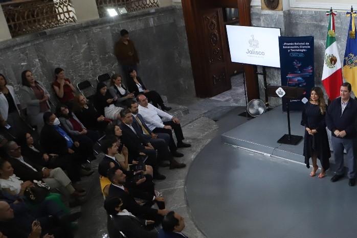 Este lunes fue entregado el Premio Estatal de Innovación, Ciencia y Tecnología en su edición 2022 a 17 personas investigadoras y científicas por su aportación a la ciencia desde nuestro Estado.El secretario de Innovación, Ciencia y Tecnología, Alfonso Pompa Padilla, destacó que la importancia de este premio radica en reconocer lo que se ha estado haciendo para impulsar la investigación desde Jalisco, y con ello seguir consolidando al Estado como un referente en materia de la tecnología y la innovación, así como en el registro de patentes.Señaló que en esta edición del concurso, que se realiza desde hace 21 años, participaron 130 personas, por lo cual “fue muy complicado para el comité del jurado calificador, compuesto por 70 personas investigadoras, el elegir a las personas ganadoras".Durante su participación, añadió que actualmente se desarrollan 12 proyectos en coordinación con investigadores e investigadoras para el beneficio de la ciudad y de las personas en busca de que se posicionen en el mercado.“Nosotros en Jalisco creemos en la ciencia, creemos en la tecnología y creemos en la innovación”, finalizó Pompa Padilla.El gobernador de Jalisco destacó que sus méritos merecen no solo este premio, sino el reconocimiento de todas y todos, porque ellas y ellos son también parte de los factores que han hecho que el Estado de Jalisco sea referente a nivel nacional e internacional.Para este premio fue destinada una bolsa total de 865 mil 980 pesos para las y los ganadores, además de entregárseles una placa de reconocimiento.Durante el evento también estuvieron presentes el coordinador General Estratégico de Crecimiento y Desarrollo Económico, Xavier Orendain; Larisa Cruz Ornelas, directora general de Ciencia y Desarrollo Tecnológico de la SICyT, y la diputada local, Gabriela Cárdenas.-En Investigación Temprana, se reconoció a Estefanía Domínguez Fonseca y a Brianda María González Martínez con su proyecto de “Síntesis y caracterización de nanogeles de quitosano reticulado con maltodextrinas para la encapsulación y liberación de fármacos”.-Por Tesis Maestría se premió a Diego Díaz Vázquez por su trabajo en el “Desarrollo de estrategias de bioeconomía circular para la gestión integral de las vinazas tequileras'' y a Carolina Rivera Lara con su “Síntesis de complejos de Au y Pt con ligante carbeno N-Heterocíclico: Evaluación de su actividad antioxidante, antibacteriana y citotóxica”.-En la categoría de Tesis Doctorado fue el proyecto “Electrohilado de sistemas poliméricos a base de quitosano para la producción de soportes nanoestructurados. Caracterización y potencial aplicación en ingeniería de tejidos”, lo recibió Christian Enrique García García.-En la categoría Divulgación, fue el proyecto “La ciencia en la vida cotidiana” de Cinthia Astrid Reyes Lozano la reconocida, mientras que en la categoría de Ciencia, fue Emmanuel Nuño Ortega el galardonado por su trabajo “Control de teleoperadores y redes de robo”.-En Tecnología, el reconocimiento lo obtuvo Jesús Raúl Beltrán Ramírez con el “Diseño, Desarrollo y Gestión de Tecnología para la Detección Oportuna de Cáncer Cérvico-Uterino” y recibió 134 mil 708 pesos.-En la categoría de Innovación se reconoció a Gregorio Guadalupe Carbajal Arizaga, Daniel Escobar Hernández, Fermín Paúl Pacheco Moisés, José Alfonso Cruz Ramos, Adriana Marcaría Macías Lamas, Jenny Arratia Quijada, Yolanda Araceli Guevara Ramírez y Regina Alejandra Guevara Ramírez, por su proyecto de “Nanotecnología en materiales híbridos antioxidantes”.-En la máxima categoría “Mérito al Desarrollo Científico-Tecnológico” se premió a la doctora Mónica Vázquez del Mercado por su contribución científica para el Desarrollo de la Sociedad de Jalisco, entre lo que destaca el ser la primera mujer del capítulo Jalisco en ingresar a la Academia Nacional de Medicina de México, tener sus principales líneas de investigación en enfermedades reumáticas, con mayor énfasis en Lupus, la artritis reumatoide y las miopatías inflamatorias idiopáticas, así como las comorbilidades en enfermedades reumáticas, entre otras acciones.GC