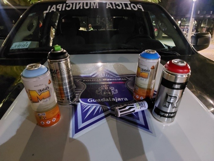 En el marco del operativo Centro Histórico, Policías de Guadalajara detuvieron a un hombre que presuntamente grafiteó el monumento “El Palomar” en Paseo Alcalde.Durante su recorrido de vigilancia de ayer, alrededor de las 22:30 horas ciclopolicías del Grupo Libras que patrullaban en Ramón Corona y Revolución observaron a dos hombres que discutían y forcejeaban.Los oficiales se aproximaron, y un trabajador que dijo ser el velador de la obra de la Plazoleta Palomar -que se encuentra en Paseo Alcalde al cruce de la calle Leandro Valle-, señaló al otro hombre y dijo que lo sorprendió grafiteando el monumento "El Palomar".El velador relató que trató de persuadir al grafitero, pero éste se puso agresivo y comenzó a amenazarlo y a seguirlo hasta el punto donde los encontraron los policías.Los policías detuvieron al sujeto, y luego de una inspección conforme al protocolo, le aseguraron cuatro latas de pintura en aerosol y un plumón de aceite.El detenido se identificó como Max Ben “N”, de 20 años, y fue llevado ante un agente del Ministerio Público.La obra "El Palomar", que mide 40 metros de altura, fue elaborada por el arquitecto tapatío Luis Barragán, y será el centro de la plazoleta El Palomar en Paseo Alcalde en honor a su autor.JM