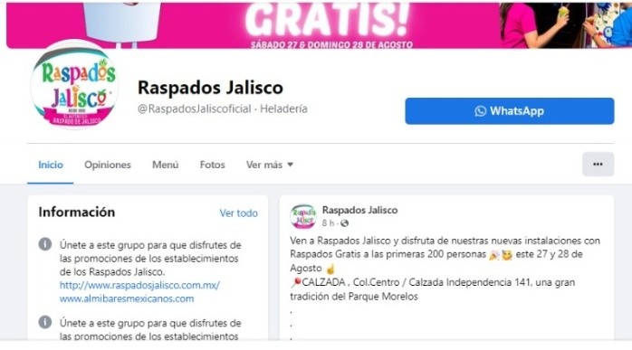 Debido a la apertura de una sucursal, un negocio de Guadalajara está dispuesto a invitar las nieves a 400 tapatíos.Raspados Jalisco publicó en sus redes sociales que por la reciente inauguración de su comercio en Calzada Independencia 141, en la Colonia Centro, entregará 400 nieves gratis.Explicó que entregarán 200 nieves cada día este próximo fin de semana (sábado y domingo)na."Disfruta de nuestras nuevas instalaciones con Raspados gratis a las primeras 200 personas este 27 y 28 de agosto".Esta empresa mexicana tiene 90 años de tradición en el Parque Morelos de Guadalajara.