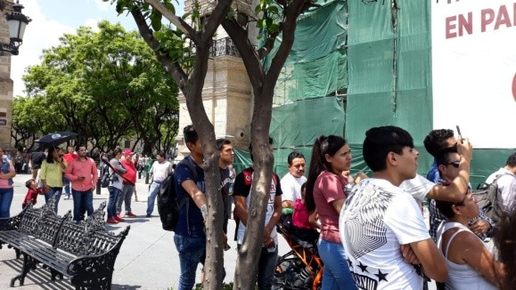 Poco después de las 14:00 horas de este jueves se dio el reporte de un sujeto que intenta aventarse desde un andamio que se encuentra en las afueras del Palacio de Gobierno.ACTUALIZACIÓN: Rescatan a hombre que trató de lanzarse del Palacio de GobiernoSegún testigos, el hombre rompió la estructura de madera que impide el paso de peatones y sería la tercera ocasión que intenta aventarse desde diferentes puntos de la ciudad; lleva más de una hora intentando lanzarse.Hasta el momento se confirma que no es trabajador del lugar.No obstante, elementos de la Unidad Estatal de Protección Civil y Bomberos (UEPCB) intentan amarrarle un arnés, pero éste no se deja.Entre las reacciones de las personas que observan la situación resaltan las que le gritan que se aviente.En la zona hay un colchón inflable con el fin de prevenir la caída.La circulación en la calle Liceo a la altura del Palacio se encuentra cerrada.En momentos más información… SA