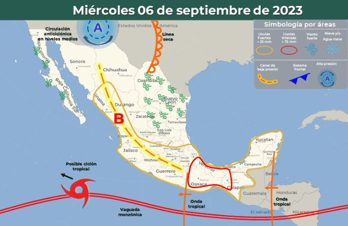 La temporada de huracanes inició en México desde el pasado 15 de mayo y prevé, en el Océano Pacífico, de 16 a 22 sistemas hidrometeorológicos, por lo que la observación de fenómenos es constante y así es como este lunes el Servicio Meteorológico Nacional (SMN), fuente oficial del Gobierno de México en materia climática, dio a conocer la posibilidad de desarrollo ciclónico que podría darle formación al ciclón "Jova".Una zona de baja presión es vigilada de cerca por el SMN, este fenómeno está asociado con la onda tropical número 25, al sur de las costas de Michoacán, que este mediodía incrementó a 90% su probabilidad para desarrollo ciclónico en 48 horas y a 100% en 7 días. Se localiza aproximadamente a 725 kilómetros al sur de Punta san Telmo, Michoacán. Se desplaza hacia el oeste-noroeste a una velocidad de entre 16 y 24 km/h.Es decir, la posibilidad de que se desarrolle la tormenta tropical "Jova" se ha incrementado, aunque está distante del litoral mexicano.Sin embargo, su extensa circulación traería lluvias esta semana en estados del centro y sur del país."Jova" sería el décimo sistema del presente temporal y podría convertirse en huracán para el fin de semana. Durante el martes, el centro de baja presión con alta probabilidad para desarrollo ciclónico podría intensificarse a ciclón tropical y a su vez absorber a la onda tropical Núm. 25, por lo que su amplia circulación ocasionará lluvias fuertes a muy fuertes sobre estados del occidente y sur del país, con lluvias puntuales intensas en zonas de Guerrero, Michoacán, Colima y Jalisco. A partir del miércoles, el posible ciclón tropical se desplazará hacia el oeste-noroeste, alejándose gradualmente de costas nacionales.Con información del Servicio Meteorológico NacionalOA