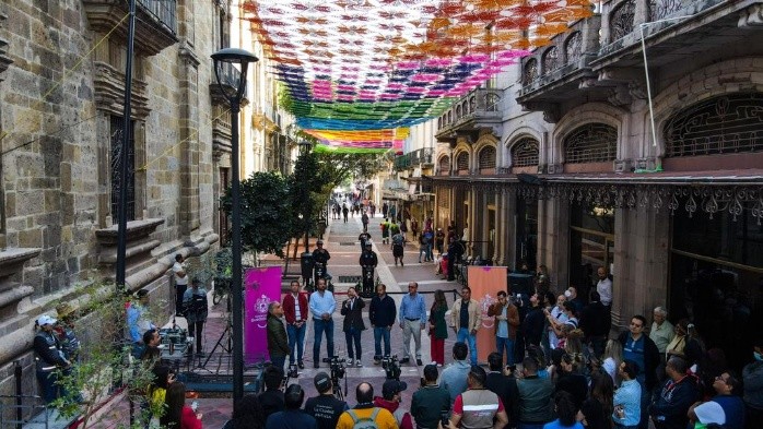 Como un atractivo más para acudir al Centro Histórico de Guadalajara, fue colocado un tramo de tejido aéreo elaborado por artesanas de Etzatlán. El alcalde tapatío, Pablo Lemus Navarro, detalló que son aproximadamente 150 metros de “Cielo Tejido” sobre el andador Pedro Moreno en el tramo de la calle Corona hasta Maestranza. El tejido permanecerá por tiempo indefinido.“Tenemos este atractivo desde Etzatlán para que la gente se venga a tomar selfies y muchas fotografías, aquí que se ve hermoso. El alcalde Mario Camarena me ha dicho que el tejido se puede quedar todo el tiempo que la gente siga viniendo a tomarse fotos” , dijo. Lemus Navarro refirió que el tejido se suma a otras actividades como el festival Ilusionante que esperan atraiga a 4 millones de visitantes. Además de que en unos días se inaugura el paseo Wixárika que será móvil y comienza en la zona de El Santuario de Guadalupe.Mario Camarena González Rubio, presidente municipal de Etzatlán, señaló que para él es motivo de gusto traer a la capital del Estado una muestra de las artesanías de su comunidad. Reiteró la invitación a visitar el municipio de la Región Valles donde hay alrededor de 9 mil metros cuadrados de tejido sobre las calles de su zona centro.“Esto es hecho por mujeres artesanas etzatlenses, cada carpeta la realizan las artesanas; es tejido de rafia y tiene un protector para rayos ultravioleta, nació para adorar al Señor de la Misericordia que es el patrón de Etzatlán”, comentó. Juan Manuel Munguía Méndez, superintendente del Centro Histórico, explicó que la colocación del tejido se planeó tras la apertura de las obras de rehabilitación del andador que fue intervenido en ese tramo.Para instalar el tejido se pidió la autorización del Instituto Nacional de Antropología e Historia (INAH), aunque no se colgó nada de los edificios históricos y los tejidos se sostienen de cables colocados entre las luminarias.FS