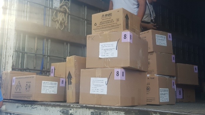 Este jueves llegaron a Jalisco las primeras boletas para la elección del presidente de la República, diputados federales y senadores, que se llevará a cabo el próximo 1 de julio en los 20 distritos del Estado. Resguardadas por personal del ejército mexicano, al distrito 8 del Instituto Nacional Electoral (INE) arribaron un millón 41 mil 540 boletas, distribuidas en 261 cajas que fueron colocadas una a una en la bodega del inmueble, donde serán organizadas para la entrega de paquetes a los presidentes de las 606 casillas que corresponden a este distrito. "A partir de este momento, el material que viene resguardado por elementos de la Secretaría de la Defensa Nacional, se deposita en nuestra bodega y de inmediato empezamos con el proceso establecido en la ley de contar las boletas y sellarlas" expresó el vocal ejecutivo del distrito 8, Hugo Villa Quintero. En otras 80 cajas llegó el resto de material necesario para llevar a cabo la elección, entre los que se encuentran marcadores, líquido indeleble, actas de escrutinio y cómputo, planilla braile u carteles informativos. Un equipo de alrededor de 12 elementos del ejército mexicano será el que resguarde la bodega a partir de hoy y hasta el término de la jornada electoral para evitar que la bodega sea intervenida por personal ajeno al INE o que el material sea manipulado. "Hay 300 distritos electorales en el país, obviamente se está distribuyendo, se está haciendo este mismo mecanismo de distribución en cada uno de estos distritos", señaló el vocal, por lo cual durante esta semana el material deberá ser entregado a todos los distritos, que establecerán las más de 150 mil casillas donde se llevará a cabo la elección; tan sólo en Jalisco habrá alrededor de nueve mil 800. Los paquetes, que constarán de las boletas foliadas, con sus respectivas actas de escrutinio y cómputo, así como de los carteles y demás material necesario para la elección, serán entregados de acuerdo con el artículo 269 de la Ley General de Instituciones y Procedimientos Electorales, en el que se señala que "los y las presidentas de los Consejos Distritales entregarán a cada presidente de mesa directiva de casilla, dentro de los cinco días previos al anterior de la elección, la documentación y materiales electorales a utilizar". EL DATO:El distrito 8 instalará tres casillas especiales para personas que se encuentren en tránsito , con un máximo de 750 boletas, las cuales se instalarán en el Instituto Cultural cabañas, el Instituto de astronomía de la Universidad de Guadalajara y la Unidad Administrativa del Estado de la colonia Observatorio.OA