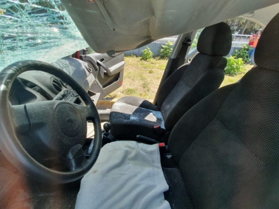 Aunque todo fue muy rápido, gracias a que estaban concentrados en la conducción, los tripulantes de los dos vehículos que fueron impactados por una llanta que se le salió a un tráiler resultaron solo con raspones y con nada más que el susto.Poco antes de las 13:00 horas, Enrique Cervantes de la Cruz circulaba en compañía de su hijo en un Chevrolet Aveo sobre el Periférico a la altura de Concentro, en los carriles que van hacia avenida Vallarta.“Viene un tráiler a toda velocidad en el sentido inverso a mí, de pronto vimos una llanta que sale disparada del camión y brinca el muro de contención”.Mientras él veía hacia el frente, fue su hijo quien vio a lo lejos el objeto que se dirigía a toda velocidad hacia ellos en un tramo donde se circula a 80 kilómetros por hora.“Él fue el que me alertó y alcancé a frenar, veníamos normal, pero esquivar una llanta es imposible porque no sabes para dónde vaya a girar con una velocidad impresionante. Hoy me tocó la mala”.Aunque intentó hacer alguna maniobra, no pudo evitar que se estrellara en el parabrisas que se comprimió sobre él y la de su hijo. “Nos desbarató todo el coche”.La colisión proyectó decenas de esquirlas de cristal en contra de los pasajeros, principalmente sobre el conductor que llevó la peor parte. Los vidrios lo cortaron en la frente y en su mano derecha, que fue la que más se le dañó. “Se me metieron vidrios por todos lados, hasta en los calcetines traigo”.Después la llanta voló hacia atrás y se fue hacia una camioneta Nissan pick up del Ayuntamiento de Zapopan, conducida por el servidor público, Pedro Venegas. “Fue todo muy rápido, vi que me estaba haciendo señas (el del Aveo), pero cuando vi ya tenía la llanta encima”.El objeto se impactó en el frente de la camioneta y se lo hundió a la mitad. La llanta detuvo finalmente su trayectoria y Pedro no tuvo lesiones. “Nada más el susto, sí fue impresionante, querer evitar la llanta está cañón”.Con la barrera de contención de por medio, no hubo posibilidad para las víctimas de ver el tráiler del infractor, que escapó del lugar. “Con trabajos alcanzas a ver la llanta”, dijo Enrique.La aseguradora les informó que valuará los daños para reparar los vehículos, cuyo deducible correrá a cargo de ellos.GC
