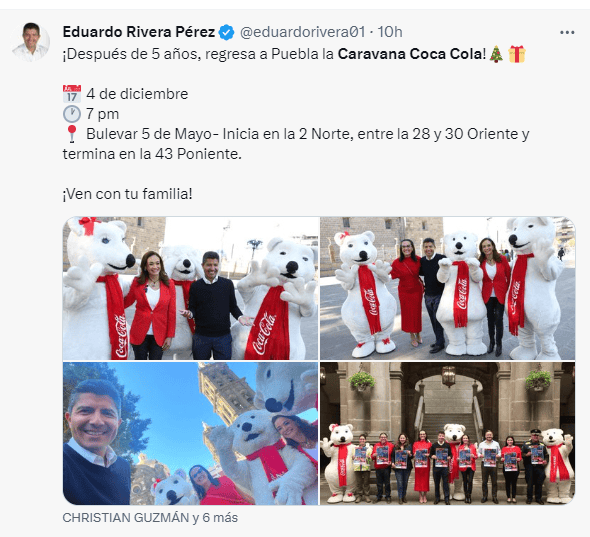 La temporada navideña está cada vez más cerca, por lo que han comenzado todos los preparativos en la ciudad para que todos y todas las tapatías puedan disfrutar de los eventos que habrá, entre ellos la caravana de la Coca-Cola. Ésta no sólo se hace aquí, sino que recorre distintas ciudades.La caravana de esta marca refresquera consiste en presentar un desfile de carros alegóricos donde los asistentes pueden ver de cerca a personajes como Santa Claus, Señora Claus y sus ayudantes.A través de redes sociales y distintos medios nacionales comenzó a filtrarse información respecto a este evento tan esperado. Sin embargo la empresa no lo ha hecho oficial, salvo en Puebla y León que han confirmado la presencia de este evento a través de las autoridades correspondientes.Este 2023, este evento se adelantará días antes de que llegue la Navidad. Es importante mencionar que este año no se aventaran regalos como en años anteriores. Esto con el objetivo de prevenir accidentes.De acuerdo con la información difundida por los internatuas, se especula que la La Perla Tapatía ésta llegará el jueves 30 de noviembre y aunque aún no es oficial, se dice que habrá ocho carros alegóricos: La caravana comienza sus recorridos el Domingo 26 de noviembre en la ciudad de Colima, posteriormente seguirá en estas ciudades:Mantente al día con las noticias, únete a nuestro canal de Whatsapp.MM