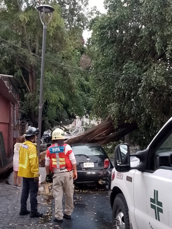 El huracán "Adrián" está generando lluvias en Jalisco y otros estados del Occidente del país. Por lo anterior, la tarde de este miércoles hubo una tormenta que trajo las primeras afectaciones para la Zona Metropolitana de Guadalajara.Entre los daños por las lluvias de esta tarde está la caída de árboles en diferentes partes de la metrópoli.En total, Bomberos Guadalajara señaló que atendió 11 reportes de afectaciones por árboles tras la tormenta. Además, el Paseo alcalde se quedó sin electricidad, por lo que no sirven los semáforos desde Juan Manuel hasta Manuel Acuña.