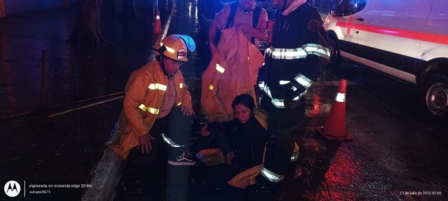 Tras la lluvia que se registró desde las 04:00 horas de hoy en varios puntos de la Zona Metropolitana de Guadalajara (ZMG), elementos de Protección Civil rescataron a dos personas que quedaron atrapados debido a la tormenta. En Avenida la Paz y 16 de septiembre, en la colonia Mexicaltzingo, la Coordinación Municipal de Protección Civil de Bomberos de Guadalajara atendió el reporte de una persona que tenía su pierna atorada en una boca de tormenta; rescatistas lo extrajeron con el equipo hidráulico, sin embargo, la persona no quiso atención médica y siguió su camino.Además, en avenida Colón e Isla Pantenaria, en la colonia Jardines de la Cruz, dos camiones se averiaron por el agua que llegó hasta un metro de altura, por eso razón uno de los chóferes que estaba en el camarote durmiendo después de su turno se quedó atorado, hasta que los bomberos lo liberaron."A nuestro arribo nos encontramos dos urbanos, y en la parte baja de uno de los camiones, en el camarote, venía un chófer que había sido relevado (...) cuando intenta salir, es prensado contra el otro camión y tiene contusión en parrilla costal izquierda y omóplato del lado izquierdo", describió Alfonso Fabián Susarrey López, segundo oficial bombero.Bomberos de Guadalajara también reportaron inundaciones en Isla Pantenaria y avenida Colón, carriles centrales de Lázaro Cárdenas, entre 8 de Julio y Gobernador Curiel, en la Calle 22 y Lázaro Cárdenas, donde auxiliaron a los conductores de cuatro vehículos varados.Por su parte, la Unidad Municipal de Protección Civil y Bomberos reportó nueve puntos con inundaciones en Zapopan, dos en Nuevo México, y una inundación respectivamente en: Las Águilas, Rinconada de la Azalea, Arcos de Zapopan, La Calma, Colinas de la Primavera, Lomas de Atemajac y Ciudad del Sol.Además dos vehículos quedaron varados, uno en López Mateos y Popocatépetl, en Ciudad del Sol; y otro más en la Unidad Administrativa Sur sobre Periférico, en La Calma.Y casas inundadas en Tlaquepaque fueron siete, cuatro en Mezquite y Álvarez del Castillo, colonia Las Huertas con 15 centímetros por azolve en drenaje, dos en calle Pino, en la colonia Loma Verde, y una más en San Odilón y Miguel Borja, en la Nueva Santa María por retorno de agua en drenaje.GC