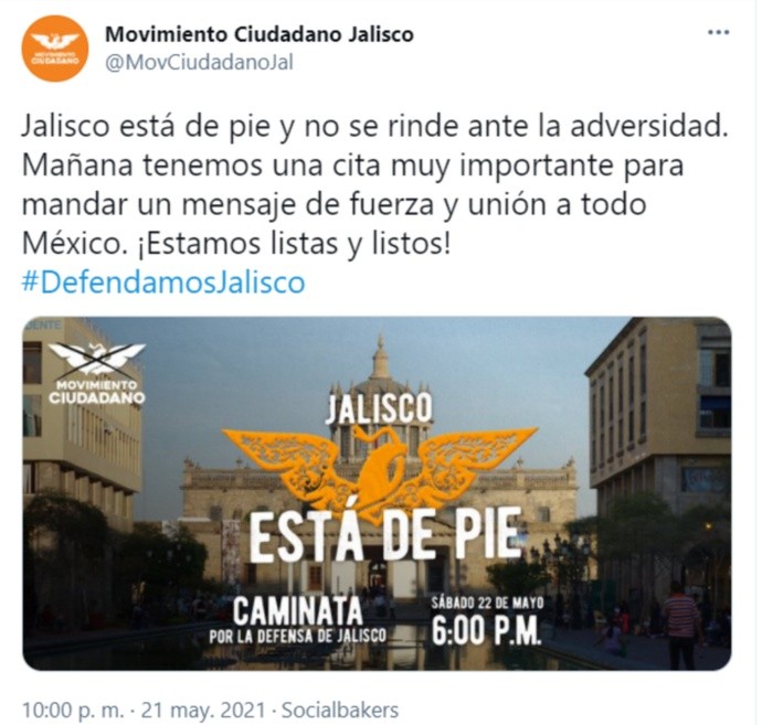 El ayuntamiento de Guadalajara anunció que habrá un operativo en conjunto con el Gobierno de Jalisco, para mantener el orden durante la ''Caminata por la defensa de Jalisco'', que organiza el partido Movimiento Ciudadano. Se llevará a cabo este sábado 22 de mayo, a las 18:00 horas.Según la Coordinación Estatal de Movimiento Ciudadano, los contingentes partirán de tres puntos: el Ex Convento del Carmen, El Santuario y Los Dos Templos para llegar a la Explanada del Instituto Cultural Cabañas.El alcalde interino de Guadalajara, Eduardo Fabián Martínez Lomelí, dice que ''ante la magnitud de esta movilización esperada, es necesario concentrar acciones y medidas eficientes y oportunas, principalmente en materia de seguridad, protección civil, de servicios médicos y de movilidad, involucrando así mismo, de manera permanente, la participación conjunta de las instancias estatales y municipales.''Por su parte, el titular de la Coordinación Municipal de Protección Civil y Bomberos de Guadalajara, Felipe López Sahagún, indica que el objetivo del operativo es ''salvaguardar la vida, los bienes y el entorno de este mitin.''Por eso, el estado de fuerza que desplegará el municipio estará conformado por 102 elementos, cuatro vehículos y seis motocicletas de la Comisaría tapatía, así como 34 elementos, cuatro ambulancias y cuatro motocicletas de Servicios Médicos, por parte de Protección Civil y Bomberos con 20 elementos, dos motobombas, una unidad de rescate y tres camionetas pickup, y la Dirección de Movilidad con cinco elementos.El director de Inteligencia Vial de la Policía Vial, Héctor Belisario Llamas, informó que habrá cierres viales en Guadalajara a partir de las 15:30 horas, en avenidas como Juárez, 16 de Septiembre, Hidalgo, Belén y Maestranza, entre otras del Centro Histórico de la ciudad, y serán abiertas a la circulación conforme vaya pasando el contingente.Miguel Ángel Sánchez, director de Transporte de Pasajeros de la Secretaría de Transporte Público, dio a conocer ajustes a las rutas del transporte público debido a la marcha: De ida: su ruta – Av. Ramón Corona – Inicia desvío – Francisco I. Madero – Juan Manuel – Termina desvío – su ruta – Juan Manuel. De regreso: no se modifica. De ida: su ruta – Industria – Inicia desvío – Juan Días Covarrubias – Esteban Alatorre – San Diego – Garibaldi – Mariano de la Bárcena – Termina desvío – su ruta – Mariano de la Bárcena. De regreso: su ruta – Av. Hidalgo – Inicia desvío – Contreras Medellín – Juan Manuel – Federación – Mariano Jiménez – República – Termina desvío – su ruta – República. De ida: su ruta – Industria – Inicia desvío – Juan Días Covarrubias – Esteban Alatorre – San Diego – Garibaldi – Mariano de la Bárcena – Termina desvío – su ruta – Mariano de la Bárcena. De regreso: su ruta – Av. Hidalgo – Inicia desvío – Contreras Medellín – Juan Manuel – Federación – Mariano Jiménez – República – Termina desvío – su ruta – República. De ida: su ruta – Industria – Inicia desvío – Juan Días Covarrubias – Esteban Alatorre – San Diego – Garibaldi – Belén – Termina desvío – su ruta – Belén. De regreso: no se modifica. De ida: no se modifica.Hacen un llamado a tener todas las precauciones a quienes participarán en la caminata, así como a la ciudadanía en general, y piden estar al pendiente de cualquier acontecimiento y las acciones que toman, así como mantener la comunicación con las autoridades en caso de ser necesario.OF