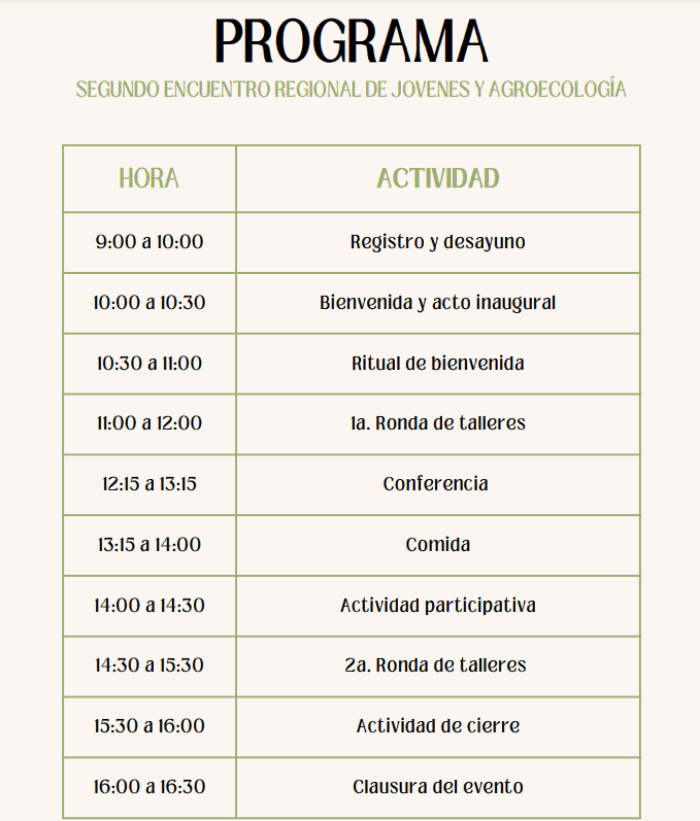 La región Sierra de Amula de Jalisco, vive un impulso importante por practicar la producción de alimentos con métodos alternativos. Una de estas técnicas es la agroecología, definida por la Organización de las Naciones Unidas para la Alimentación y la Agricultura (FAO) como "un enfoque holístico e integrado que aplica simultáneamente conceptos y principios ecológicos y sociales al diseño y la gestión de sistemas agrícolas y alimentarios sostenibles".En dicha región, está El Limón declarado como el primer municipio agroecológico en México. En este lugar se vivirá el Segundo Encuentro Regional de Jóvenes y Agroecología.Ente encuentro será el próximo 15 de marzo de las 9:00 am a las 5:00 pm en las instalaciones de la Escuela Preparatoria Regional de El Grullo, módulo El Limón.Entre las diferentes actividades habrá un acto inaugural, ritual de bienvenida, rondas de talleres y conferencias.Los talleres se enfocarán en en lombricomposta, hechos con desechos, abejas, cama agroeclógica, tintes naturales, utilización de fertilizantes orgánicos, reproducción de semillas, naturalista, bocashi, compostas verticales, acuacultura, agro-arte, bioinsumos, plantas medicinales, entre otros.El cupo será para al menos 300 jóvenes que quieran participar de cualquier parte de Jalisco. La inscripción es a través de un código QR o a través de las redes sociales de la Escuela Preparatoria Regional de El Grullo (EPREG) Módulo El Limón.A quienes decida asistir se les pide llevar ropa cómoda, un vaso, plato y cubiertos, para evitar generar basura.*Mantente al día con las noticias, únete a nuestro canal de WhatsApp aquí: https://whatsapp.com/channel/0029VaAf9Pu9hXF1EJ561i03MV