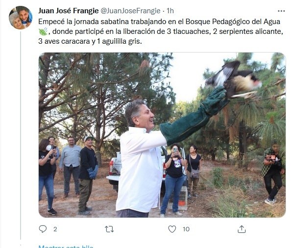 Tres tlacuaches, dos serpientes alicante, tres aves caracara y una aguililla gris que habían sido rescatados son parte de los 187 animales que Zapopan ha logrado reinsertar en su hábitat este año.Esta mañana, estos últimos animales fueron reinsertados en el Bosque Pedagógico del Agua Colomos III.“Estos animales se han recuperado en casas o por gente que reporta en algún lugar y Protección Animal va y los resguarda en la Unidad Villa Fantasía donde se les cuida y da tratamiento. Estos animales que se sueltan hoy para poblar esta zona ya están en perfecto estado de salud”, señaló el presidente de Zapopan, Juan José Frangie.Por su parte, la directora de Protección Animal, Yamile Lofte Galán, compartió que se eligió el lugar “porque creemos que es muy importante que esta área también esté poblada de los animales que deben estar en la zona, que eran parte de ella antes de que llegáramos los humanos y esto nos va a ayudar a tener un equilibrio ecológico dentro del bosque. Hay que recordar que no solamente son las plantas; si no hay una interacción con animales e insectos no podremos tener un medio ambiente sano”.Aseguró que la reinserción de la fauna no representa un riesgo para los visitantes a este espacio.Los ciudadanos pueden reportar la presencia de fauna silvestre a la línea de emergencia 911 o a los teléfonos de la Dirección: 33 3818 2200, extensión 3285, o al 33 1521 3141.El Gobierno de Zapopan exhorta a la ciudadanía a seguir las siguientes recomendaciones en caso de detectar un animal salvaje en zonas urbanas o habitadas:JM