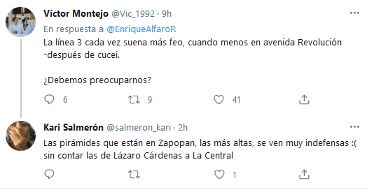 Luego del colapso de un puente de la Línea 12 del Metro de la CDMX, que hasta el momento ha dejado 23 personas muertas y 70 heridos, provocó temor entre los tapatíos, que pidieron al gobernador de Jalisco revisar la Línea 3, que tan sólo tiene ocho meses de que fue inaugurada.Ayer por la noche el mandatario estatal escribió un mensaje en Twitter donde lamentaba el accidente ocurrido la noche de ayer lunes, y mostraba su apoyo a las víctimas y su familia.Sin embargo, lo que destacó fue los múltiples mensajes en respuesta, donde usuarios de redes sociales hacían un llamado al gobernador de Jalisco para que, a la brevedad, realizaran revisiones en la Línea 3 y así evitar una tragedia como la ocurrida en la Ciudad de México."Señor Gobernador. A revisar la linea 3, ya le hemos dicho los especialistas que le puede dar un susto similar"."Revisen la línea 3, prevengan antes de que ocurra una desgracia similar"."Wey, como andamos acá con la línea 3 del metro? Algún tema? No vaya ser"."Esto se puede evitar aquí en jalisco, siempre y cuando el gobierno está en constante supervicion de las líneas 1,2 y 3 del tren ligero para que no pase lo mismo aquí también, ya debe de haber hechos y nada de palabras"."Sr Gobernador ojalá y no está demás revisar u supervisar las instalaciones de la línea tres del tren ligero sobre todo los tramos que van por arriba".Fueron algunos de las peticiones de los usuarios en Twitter, aunque algunos fueron más detallistas sobre los posibles daños que habría en la Línea 3:Desde su inicio, la construcción de la Línea 3 estuvo envuelta en la polémica. Para empezar, su construcción duró más tiempo del que se tenía previsto, después el paso de la tuneladora "La Tapatía" provoco daños en edificios, y casas del centro de Guadalajara, que hasta el momento no se han solucionado.Algunos de los inmuebles que siguen con daños, y por lo tanto, no han reabierto son los templos de San Francisco de Asís, Catedral y el Santuario, así como el Museo del Periodismo, el albergue Fray Antonio Alcalde, la Plaza de la Tecnología, entre otros, según informa la SCT por Transparencia. La ruta comenzó operaciones desde septiembre de 2020.El mes pasado, Siteur informó que persisten las deficiencias en la construcción e instalaciones, como el suministro de agua potable en algunas estaciones, patios y cocheras y el sistema de riego de estos últimos dos espacios. También se registran desperfectos en la puesta en operación de una planta de tratamiento de agua, en escaleras y elevadores, el Sistema de Supervisión, Control y Adquisición de Datos (llamado Scada), la corrección de accesos a las estaciones y el arreglo de marquesinas. GC