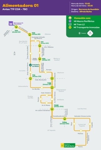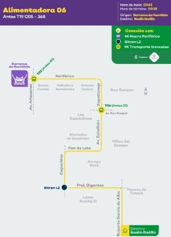 En la tercera etapa del Peribús, que comienza este domingo, seis rutas más se modificarán. Cinco para ser alimentadoras: tres en Tonalá, una en Guadalajara y otra en Zapopan; así como una ampliación, informó el secretario de Transporte, Diego Monraz.Amílcar López, director de Transporte Público detalló que serán la Alimentadora 01 (A01), antes 78, la Alimentadora 02 (A02) que sustituye la 78C, la Alimentadora 03 (A03) en lugar de la 78C, pero en una segunda parte de su recorrido, la Alimentadora 06 (A06) que sustituye la ruta 368 y la Alimentadora 07 (A07) antes 320. Así como una ampliación de la ruta C126-V1.La A01 saldrá de Barranca de Huentitán y circulará por colonias como Oblatos, San Martín, El Tapatío hasta llegar a Alfredo Barba. Contará con 18 unidades y una frecuencia de paso de siete minutos.La A02 partirá de Barranca de Huentitán y circulará por colonias como La Federacha, San Vicente, San Andrés, Tetlán, hasta llegar a San Pedrito. Contará con 19 unidades y una frecuencia de paso de 9 minutos.La A03 irá del Centro Cultural Universitario hacia Acueducto, pasando por Jardín Real, Santa Margarita Residencial o Jardines del Valle. Contará con nueve unidades y una frecuencia de paso de 11 minutos.La A06 iniciará en Barranca de Huentitán y circulará por colonias como Alamedas de Zalatitán, Los Camichines, hasta llegar a Basilio Badillo. Contará con cinco unidades y una frecuencia de paso de 12 minutos.La A07 comenzará en Barranca de Huentitán y circulará por colonias como Circunvalación Belisario, Independencia, Analco, hasta llegar a la Antigua Central de Autobuses. Contará con 12 unidades y una frecuencia de paso de 10 minutos.La ruta C126-V1 se ampliará para dar servicio al desarrollo habitacional Los Olivos, dentro del municipio de Tlaquepaque, derrotero que antiguamente era proporcionado por la ruta 380A, misma que se integró al sistema de Peribús.Monraz recordó que en la aplicación Google Maps se pueden encontrar los recorridos de cada ruta, para mayor facilidad de los usuarios.GC
