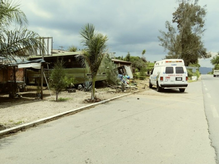 Un camión de personal se impactó contra una finca en el municipio de Gómez Farías, arrebatándole la vida a una persona que iba caminando por la zona.Personal de Protección Civil y Bomberos de Jalisco, informaron que a su arribo, se encontraron con al vehículo que además, había impactado a una camioneta Nissan de estacas.La zona fue resguardada por elementos de seguridad para hacer las labores correspondientes. Hasta el momento se desconocen las causas que pudieron provocar el descontrol de la unidad.NM