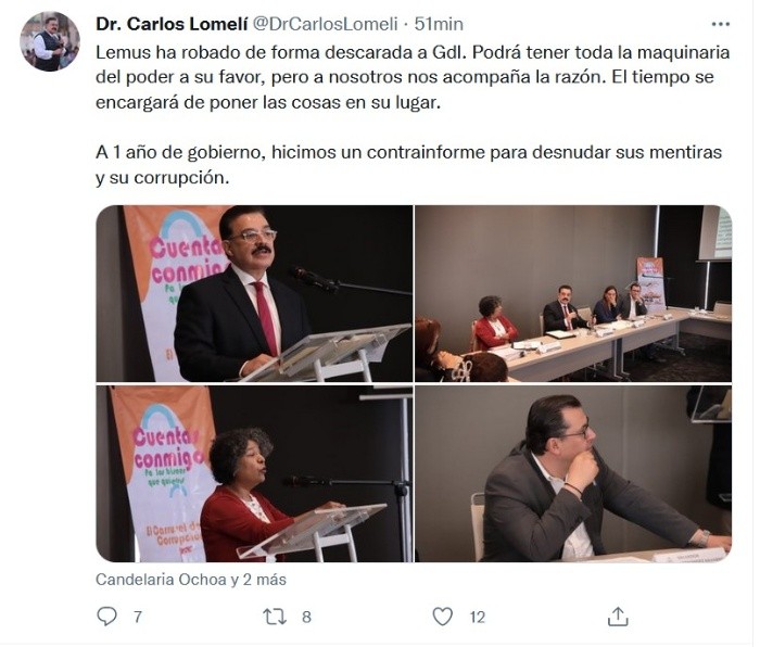 Tras presentar el contrainforme del primer año de Pablo Lemus, las y los regidores de Morena en el Ayuntamiento de Guadalajara acentuaron que se caracteriza por compras a sobreprecio. Señalan que está reprobado en seguridad pública, pese a las inversiones para el arrendamiento y compra de equipo y vehículos.Carlos Lomelí subrayó que en el primer año del Gobierno se han documentado “evidentes prácticas de corrupción y excesos en la administración”.“Es muy claro que Pablo Lemus no está bien ni de buenas, su Gobierno está reprobado; hemos hecho un análisis de lo que nos hizo llegar en su primer informe y, lamentablemente, nos pinta una ciudad que sólo él ve y su equipo, pero no corresponde a la realidad que requieren los ciudadanos”.Denunció el “excesivo pago” a la empresa Sulo por el mantenimiento y limpieza en los Puntos Limpios y papeleras. Por 120 Puntos Limpios, dijo que el municipio realiza un pago unitario mensual de 11 mil 542 pesos, y de 114 restantes por cada punto a cargo exclusivo de la empresa se hace un pago de 32 mil 109 pesos, además de que por cada una de las cuatro mil 723 papeleras, se eroga 264 pesos. “Todo eso representa un costo total mensual de cuatro millones 919 mil 905 pesos”.La regidora Candelaria Ochoa presentó “las inconsistencias” que en materia de cultura, “la falta de apoyo” para la dignificación de los cementerios y centros comunitarios del DIF, así como “el sobreprecio” que el municipio pagará por la colocación de un carrusel en el centro de la ciudad, cuyo contrato fue adjudicado a una empresa que no está relacionada al ramo.En el tema de la vivienda, calificó como proyectos mercantilistas de los Gobiernos de Movimiento Ciudadano, que se han dedicado a autorizar la construcción de edificaciones a precios que son inalcanzables para la compra o renta de las y los tapatíos. Por eso apostó por construir vivienda social.El regidor Salvador Hernández presentó un panorama de la situación que viven los 95 mercados de la ciudad y las propuestas que han promovido para su dignificación y reactivación.Y la regidora Mariana Fernández puntualizó algunas “compras a sobreprecio” que se han autorizado por parte del Comité de Adquisiciones, como es la compra de tenis para alumnos de nivel básico, que fueron adquiridos a un mayor precio en comparación con el municipio de Zapopan, el arrendamiento de patrullas, vehículos y equipo, o el seguro de menaje que no ha servido para nada para sufragar gastos cuando un contribuyente sufre robo en su vivienda o es causa de algún siniestro.Criticó la adjudicación de la edificación del C5 por un monto de 167 millones de pesos, costo que no incluye la compra de cámaras de vigilancia.JM