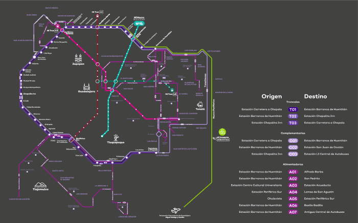 Con la llegada del Peribús, también conocido como “Mi Macro Periférico”, que arrancará operaciones el próximo domingo, correrán también 13 rutas adicionales que complementarán el servicio y darán conexión a diversas colonias aledañas.Se trata de siete rutas alimentadoras, tres complementarias y tres troncales, las cuales acercarán el servicio de Mi Macro Periférico a las personas que viven y trabajan en colonias como Carretera a Chapala, San Juan de Ocotán, Chulavista o la Barranca de Huentitán.Las siete alimentadoras son: la A01, que correrá de la Estación Barranca de Huentitán a ALfredo Barba; la A02 que sale de la Estación Barranca de Huentitán a San Pedrito; la A03 que correrá de la Estación Centro Cultural Universitario a la Estación Acueducto, y la A04, que saldrá de la Estación Periférico Sur con rumbo a Lomas de San Agustín.También estará la A05, que irá de Chulavista a la Estación Periférico Sur a Lomas de San Agustín; la A06, que saldrá de la Estación Barranca de Huentitán a Basilio Badillo, y por último la A07, que irá de la Estación Barranca de Huentitán a la Antigua Central de Autobuses.Las tres rutas complementarias que además tendrán transbordo gratuito al Peribús y viceversa al pagar con la tarjeta de Mi Movilidad, permitirán completar el circuito de este nuevo servicio, tal como lo hacía la ruta 380, ruta desaparecerá una vez que inicie operaciones Mi Macro Periférico.Se trata de la C01, que saldrá de la Estación Carretera a Chapala con rumbo a la Estación Barranca de Huentitán; la C02 correrá de la Estación Barranca de Huentitán a la Estación San Juan de Ocotán, y la C03, que iniciará su recorrido en la Estación Chapalita Inn hacia la Estación L3 Central de Autobuses.Por último se encuentran las rutas troncales, que tendrán el 50% de descuento en el costo del pasaje al transbordar de las rutas alimentadoras al pagar con la tarjeta de prepago.Estas recorrerán, en tres partes, la ruta que tenía la ruta 380. Se trata de T01 que irá de la Estación Carretera a Chapala a la Estación Barranca de Huentitán; la T02 que saldrá de la Estación Barranca de Huentitán con rumbo a Chapalita Inn, y la T03, que tendrá como inicio la la Estación Chapalita Inn con rumbo a la Estación Carretera a Chapala.La respuesta es sí, y los descuentos entre diferentes los sistemas de transporte serán de la siguiente manera:El descuento aplicará sólo con el uso de la tarjeta Mi Movilidad. Y vale la pena recordar que el pago de la tarifa dentro de las rutas troncales será únicamente mediante la tarjeta Mi Movilidad. No se aceptará dinero en efectivo.Con el Peribús también se podrán realizar viajes multimodales en interconexión con el Tren Ligero, el Macrobús y el transporte público de la ciudad de la siguiente manera:JM