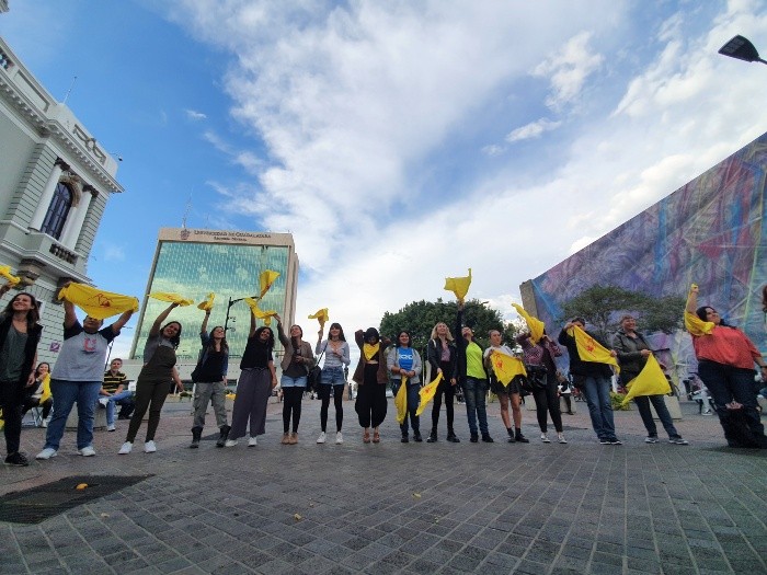 Vestidas con pañuelo amarillo, con cantos y la lectura de algunos datos que reflejan la violencia contra la mujer en México y, sobre todo en Jalisco, mujeres del estado se unieron a la protesta global contra la desigualdad."Dime si al salir volveré a casa segura", fue una de las frases del canto de uno de los shows.Guadalupe Ramos, integrante del Comité de América Latina y el Caribe por la defensa de los derechos de las mujeres (Cladem), señaló que la desigualdad se vive desde que se tiene que exigir seguridad."Nuestra primera exigencia es nuestro derecho a seguir vivas, vivir una vida libre de violencia y que, a partir de eso, se disminuyan las desigualdades", dijo.Agregó que actualmente la brecha salarial, que es otra de las principales desigualdades que se sufren, es de 20% menos que el salario de los hombres -por desempeñar el mismo trabajo-, según cifras de la misma Secretaría del Trabajo.Un caso que refleja esta diferencia fue el que ella misma vivió cuando, por dar la misma conferencia organizada por un Instituto de la Mujer, a ella le pedían gratuidad mientras que al otro ponente, quien es hombre, le pagaron 80 mil pesos. Al final, al reclamar que le pagaran lo mismo decidieron desistir de ella."Son acciones que parecen absurdas en esta época. (En el estado) sólo hay un discurso de igualdad que no se refleja en la realidad", expresó.Además, durante una de las intervenciones, señalaron que 2019 fue el año más violento para las mujeres de Jalisco con 254 homicidios violentos. También recogieron testimonios en cartulinas con la pregunta "¿A ti qué te ata?".Rosana Valdivia, quien forma parte de la Alianza contra la Desigualdad, resaltó que la desigualdad obliga a las mujeres a quedarse en entornos violentos que, muchas veces, terminan en la muerte."Este punto final se puede evitar con la apoyo tanto del Estado, como de los empresarios y de la sociedad, otorgando otras oportunidades a mujeres que viven estos entornos", agregó.Al grito de "¡Nos estamos desatando" y después la lectura de un decálogo de exigencias a las autoridades mencionadas -entre las que piden salarios justos, acceso a vivienda adecuada y justicia con perspectiva de género- las asistentes dieron por finalizado el evento.Algunos de los colectivos que se sumaron fueron Parvada, Techo, Cladem, Alianza por la Igualdad y Tejidos Feministas.JM