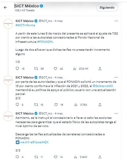 Muchas familias han comenzado a planear sus vacaciones de Semana Santa 2023 y algunas de ellas han decidido acudir a Puerto Vallarta, Jalisco. Sin embargo, una de las autopistas clave para llegar a este destino de playa subió este lunes 6 de marzo.De acuerdo con la Secretaría de Infraestructura, Comunicaciones y Transportes (SICT), el aumento se da luego de que el Fondo Nacional de Infraestructura (Fonadin) solicitara por repetidas ocasiones un alza por la inflación.Por lo anterior, la autopista Jala-Compostela, que es una de las casetas clave para llegar a Puerto Vallarta, incrementó el costo del peaje de 138 pesos a 150 pesos. El aumento en las tarifas de las autopistas concesionadas en el país no es igual en todas las autopistas, sino que cambia según la ruta y la distancia recorrida.Por lo anterior, la SICT recomendó a los usuarios consultar las nuevas tarifas dadas a conocer por el Fonadin antes de planificar sus viajes.Este medio publicó que para viajar a Puerto Vallarta desde Guadalajara se deben gastar más de 900 pesos incluyendo los nuevos tramos.Además del tramo Jala-Compostela que ahora cuesta 150 pesos, los viajeros deben pagar las siguientes casetas si van desde Guadalajara: El Arenal (193 pesos), Plan de Barrancas (288 pesos), Compostela (38) pesos, La Peñita (62 pesos) y Bucerías (223 pesos). La autopista Jala-Compostela tiene cuatro carriles, 12 metros de ancho y y 67.9 kilómetros. Por esta vía circulan 6 mil 400 vehículos diarios y fue inaugurada en abril de 2017.