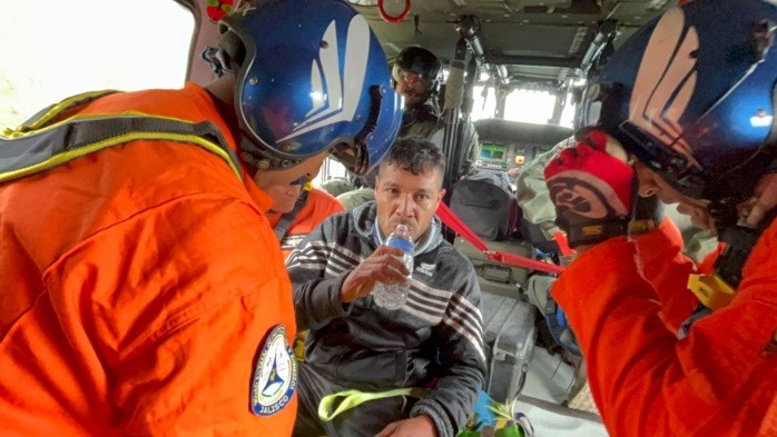 Como si se tratara de una película, así fue rescatado este lunes un hombre que se encontraba extraviado en el Nevado de Colima, pues fue rescatado desde un helicóptero, luego de que permaneciera toda la noche a la intemperie.La Unidad Estatal de Protección Civil y Bomberos de Jalisco (UEPCYBJ) informó, que en coordinación con el Escuadrón Aerotáctico de la Secretaría de Seguridad Jalisco y con el Grupo Aéreo Fénix, se realizó el rescate de una persona perdida desde el día de ayer en el Parque Nacional Nevado de Colima.La dependencia explicó en un comunicado que el hombre de 36 años, originario de Tlajomulco, se encontraba en el Nevado con un grupo de turistas cuando al parecer se extravió y terminó en una zona de difícil acceso.Por lo que, la tarde de este lunes, se realizó la extracción aérea del extraviado, quien presentó signos de hipotermia.El hombre fue llevado en una ambulancia de Protección Civil de Zapotlán el Grande hacia un hospital del IMSS de ese municipio para ser atendido y valorado.Aaron González Gallardo, primer comandante regional de la UEPCBJ, detalló que el hombre se encontraba cansado y deshidratado porque estaba ahí desde ayer."El terreno tenía unas barrancas y el masculino estaba en una punta en una lomita que complicaba las maniobras, pero afortunadamente resultó de buena manera el rescate".