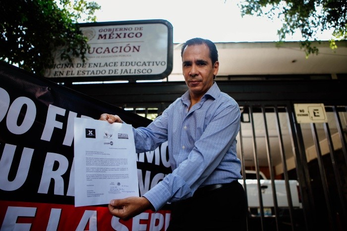 Diferentes colectivos entregaron en la oficina de la Secretaría de Educación Pública (SEP), delegación Jalisco, más de ocho mil firmas de ciudadanos de todo el país que exigen la renuncia de la titular de la dependencia, Delfina Gómez.En total había 10 personas de los colectivos Xiudadanos Mx, Unión Nacional de Padres de Familia, Citizan Go y Misión Rescate México en el sitio; del total de firmas entregadas, 30% son de la Entidad.Las rúbricas fueron recibidas por Perla Jazmín Medellín, titular de Enlace Educativo en Jalisco."Es una burla al estado de derecho en México que todavía ella y su grupo estuvieron en una acción ilegal, siga ella Delfina Gómez, a cargo de una de las secretarías más importantes de este país, que es la Secretaría de Educación Pública", comentó Arturo Pons, del colectivo ciudadano.En enero del 2022, el Tribunal Electoral del Poder Judicial de la Federación (TEPJF) ratificó la multa a Delfina Gómez por cuatro millones 529 mil pesos por una red de financiación irregular llevada a cabo entre febrero de 2013 y julio 2015 en Texcoco, Estado de México. En aquel entonces era presidenta municipal.Durante el tiempo que duró la red de financiación, se retuvo el 10% del salario de cientos de trabajadores públicos de la localidad, que habrían sido alrededor de dos millones de pesos; de acuerdo con la investigación del Instituto Nacional Electoral, esto sirvió para costear la formación de Morena.Pons, uno de los que pide la destitución de Gómez, destacó que son varias las malas decisiones que ha tomado la SEP a cargo de su más actual directiva."Tenemos desgraciadamente un abanico tremendo de malas acciones, de diferentes malas decisiones del Gobierno, la eliminación de las escuelas de tiempo completo, como ejemplo, el privilegiar los intereses políticos, antes que privilegiar la calidad en la educación, sabemos que se eliminaron todo tipo de pruebas internacionales que midan la calidad", resaltó.GC