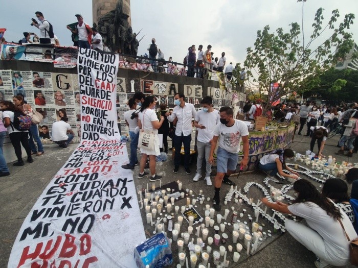 Al grito de "Ni uno más", comenzó la manifestación por el asesinato de los hermanos González Moreno convocada por la Universidad de Guadalajara y la Federación de Estudiantes Universitarios.La marcha, a la que asistieron miles, estuvo encabeza el rector general Ricardo Villanueva Lomelí, así como los líderes del sindicato de la UdeG, el presidente de la FEU, Fundej, Javier Armenta y profesores.Los manifestantes caminaron por Av Vallarta hacia Chapultepec hasta la Glorieta de las y los desaparecidos, donde llegaron aproximadamente media hora después.En el monumento, José de Jesús Becerra secretario general del SUTUdeG señaló que los hermanos "no estaban en la calle, ni en una carretera, ni en un auto: los sacaron de sus casas".Añadió que "exigimos que se pongan a trabajar, garantice nos libertad esperanza, poder salir a las calles sin el miedo de no regresar".Javier Armenta resaltó que el Estado "debería ser el primero en la Glorieta de los Desaparecidos", mientras un grupo de manifestantes gritaba "fuera Alfaro" y "no es campaña"."Hoy Jalisco es reconocido como un estado desbordado de violencia. Que un estado prive de su libertad a los jóvenes, es un estado de alarma".Luego de ello, el presidente convocó a un pase de lista de los estudiantes de la Universidad que han sido desaparecidos así como un minuto de silencio por todas las víctimas. Al día, Jalisco suma 12 mil 628 desaparecidos.Por su parte, el rector general de la UdeG, señaló que la marcha esporádica es por 16 estudiantes desaparecidos pero también por los miles de estudiantes."La barbarie se ha apoderado de nuestra existencia. Urge que la política ponga en el centro la buena vida. Caminamos aquí para decir "basta" como acto simbólico para manifestar que no podemos rendirnos ante esta catástrofe. Exigimos justicia para todos los ausentes y paz para todos los presentes".Guadalupe Aguilar, vocera de Familias Unidas por Nuestros Desaparecidos en Jalisco compartió que tiene 10 años buscando a su hijo."Estoy aquí para que ninguna otra madre tenga que buscar a su hijo o hija. Semefo es una fosa, Jalisco es una fosa. El día que todas las madres de desaparecido nos unamos ¡no se la van a acabar!", dijo.Añadió que se tienen que tomar medidas radicales para asegurar que no habrá ni uno más e invitó a todos los colectivos de desaparecidos a unirse en uno solo para luchar en un solo frente.Con el encendido de veladoras en la Glorieta de los Desaparecidos terminó la manifestación convocada por la Universidad de Guadalajara para exigir Paz y Justicia para los hermanos González Moreno.LS