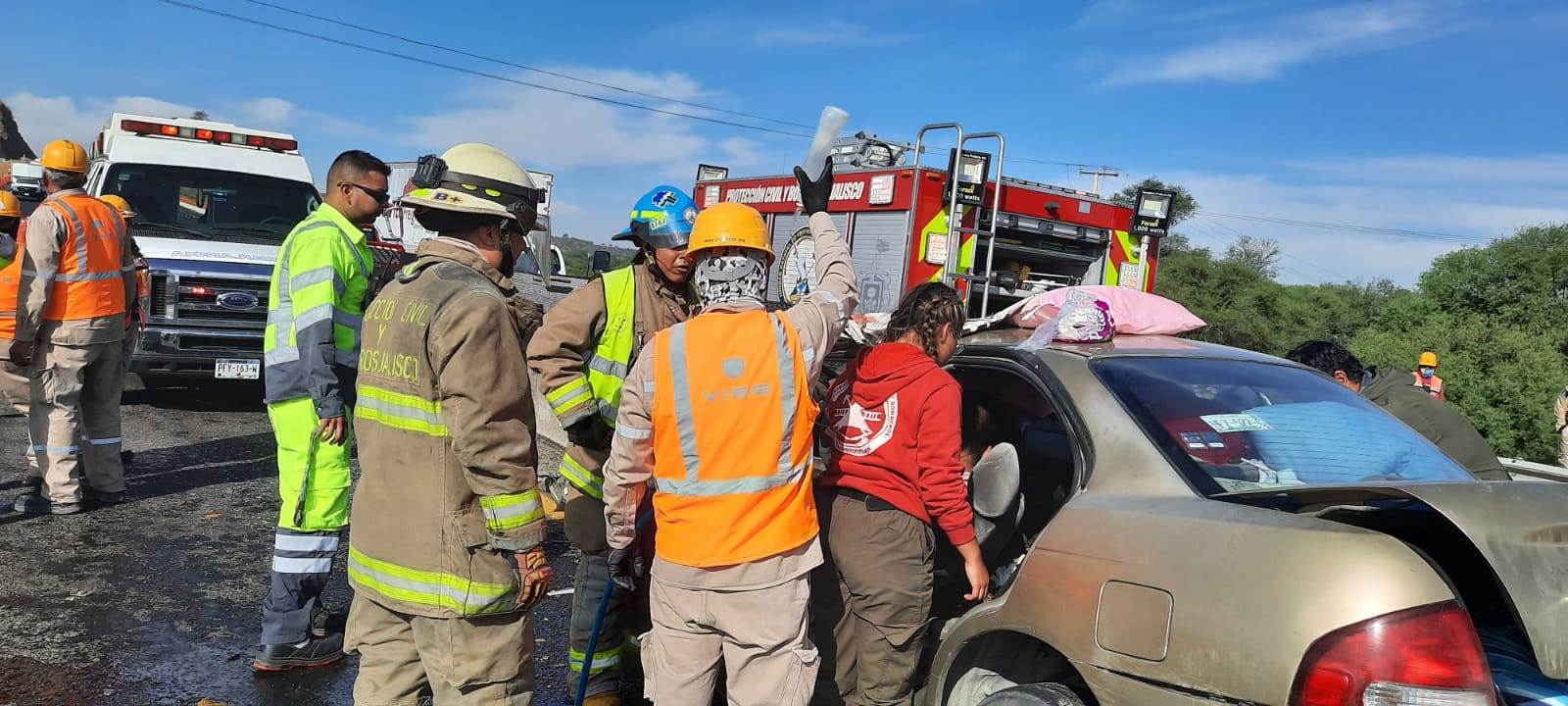 Esta mañana, un auto en el que viajaba una familia chocó contra el muro de contención en la Autopista a Los Altos en el municipio de Jalostotitlán, con saldo de cuatro personas muertas y dos lesionados.El percance se registró en la vía mencionada a la altura del kilómetro 95, donde rescatistas de la Unidad Estatal de Protección Civil y Bomberos de Jalisco (UEPCBJ) localizaron un auto Nissan Sentra de modelo atrasado estrellado contra el muro de división de carriles en el sentido de San Juan de Los Lagos hacía Jalostotitlán.En el lugar los rescatistas encontraron dos mujeres sin vida y un menor de edad, otra mujer falleció en el traslado al hospital; también, dos hombres resultaron lesionados, trasladados al Hospital Real San Lucas, en Tepatitlán.Se desconoce la causa del siniestro, y que provocó que el coche terminara así, bomberos extrajeron a tres personas que estaban prensadas con el equipo hidráulico.FS