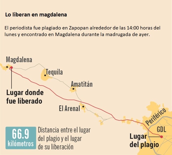 Jaime Barrera fue liberado la madrugada de ayer luego de ser plagiado la tarde del lunes pasado, al salir de la estación de radio en la que trabaja.La noticia de su localización con vida, compartida por su hija Itzul, fue celebrada por miembros de la sociedad civil, colegas e incluso por la clase política. Barrera dijo que sus captores lo dejaron en el municipio de Magdalena, ubicado en la Región Valles. Allí buscó ayuda y se acercó a una tienda, desde donde pudo hablar con sus familiares. Compartió que elementos de la Guardia Nacional lo escoltaron hasta reunirse con sus seres queridos. Durante una conferencia de prensa, el gobernador de Jalisco comentó que si bien la Fiscalía General de la República (FGR) atrajo el caso, la Fiscalía estatal continuará con las indagatorias para conocer qué sucedió.El Instituto Tecnológico y de Estudios Superiores de Occidente (ITESO) festejó el regreso del periodista. “Nos unimos a la exigencia de justicia en este y todos los casos de desapariciones que se registran diariamente en México y para que los periodistas puedan ejercer su labor profesional sin miedo”, destacó. Por su parte, Pablo Lemus, aspirante de Movimiento Ciudadano (MC) al Gobierno de Jalisco, destacó el papel de los ciudadanos y los comunicadores en la exigencia de que Barrera fuera encontrado. “Me da mucho gusto saber que Jaime Barrera se encuentra sano y salvo... Nunca perdí la fe en que esto sucedería”. La Embajada de Estados Unidos en México se sumó a los mensajes positivos: “Nos da gusto que estés a salvo. Esto no debe pasar otra vez, ni a ti ni a nadie más que ejerza la labor periodística para mantenernos libres”, resaltó en redes sociales. En el mismo sentido, la Oficina en México del Alto Comisionado Organización de las Naciones Unidas para los Derechos Humanos se pronunció de manera favorable. “Saludamos que se haya localizado con vida al periodista Jaime Barrera y alentamos a continuar con la investigación de lo sucedido e informar a la sociedad de los resultados”, acentuó el organismo."Este hecho por supuesto nos invita a revisar procesos, a tener una comunicación estrecha con las y los periodistas de Jalisco para ver qué más podemos hacer".Gobernador de Jalisco."No hay nada mejor que estar en casa y me da muchísimo gusto saber que mi estimado Jaime Barrera ya está de regreso con su familia".Ricardo Villanueva, rector de la UdeG."Este caso puede marcarnos el inicio de una nueva etapa en la que sociedad, gobiernos, empresas y organismos civiles jalemos hacia un mismo objetivo".Pablo Lemus, aspirante de MC a Casa Jalisco."Que este amargo episodio nos permita abrazar cada caso, aún hay muchos hogares incompletos... Encontrarlas y encontrarlos nos corresponde a todos".Claudia Delgadillo, aspirante de Morena y aliados a la gubernatura."Qué alegría que estés a salvo y que regreses a casa, querido Jaime Barrera... Mi abrazo solidario a cada familia que se encuentra en una situación así".Laura Haro, abanderada del PRI, PAN y PRD al Gobierno de Jalisco