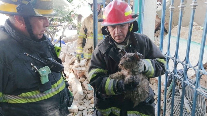 Bomberos de Guadalajara rescataron la mañana de este sábado a una perrita de raza pequeña de entre los escombros de una casa que hizo explosión.En el incidente, ocasionado presuntamente por la acumulación de gas, se reportó un muero y al menos siete personas lesionadas.Los hechos ocurrieron en la calle Dionisio Rodríguez al cruce con Antonio Enriquez, en la Colonia San Andrés.Al sitio acudieron elementos de Protección Civil Guadalajara y de la Unidad de Protección Civil y Bomberos de Jalisco.Durante las maniobras de la búsqueda de más víctimas en el punto, elementos de bomberos rescataron a una perrita, llamada "Lobita", que fue entregada a sus dueños.En un video compartido por Bomberos Guadalajara, se observa el momento en que es rescatada cuando estaba debajo de los escombros.Personal de la dependencia informó que aparentemente se encontraba sin lesiones, sólo con algún tipo de aceite en su cuerpo.