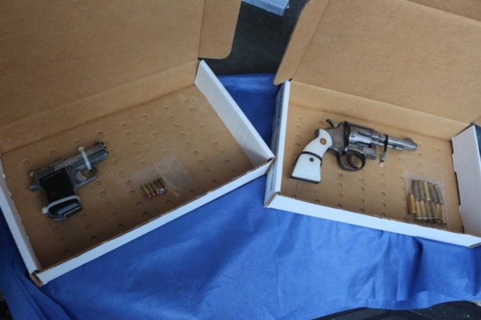 Luego de revisar al conductor de una camioneta tipo SUV que estaba mal estacionada en la colonia Jardines del Valle, Policías de Zapopan le hallaron al conductor dos armas de fuego, una tipo revólver y otra escuadra, así como cuatro loros.La tarde este viernes en el cruce de avenida Servidor Público y Valle Atemajac los uniformados de la comisaría de Zapopan se encontraron una camioneta Toyota Highlander, en color gris, con placas de Oaxaca y mal estacionada. "Se tiene a una persona detenida por portación de arma de fuego, esto con el operativo que se tiene de manera permanente en las avenidas principales. El personal del escuadrón motorizado detectó un vehículo que estaba parado estorbando la vialidad estacionado en línea amarilla y con la cajuela levantada, esto era un vehículo tipo familiar en color gris y al hacerle la recomendación a la persona que lo tripulaba"."Un hombre que entorpecía la vialidad, se puso nervioso, al ampliarle la revisión se le encontraron dos armas de fuego. No tenía permiso de portación, en el vehículo traía cuatro loros con plumaje en color verde", comentó quien se identificó como el oficial Hernández de la comisaría de Zapopan.El detenido es un hombre de aproximadamente 50 años al que se le aseguró un arma calibre 38 especial con seis cartuchos, el arma de fuego calibre .25 con nueve cartuchos y cuatro loros. Personal de la Unidad Táctica Canina de Zapopan acudió con un binomio para realizar una inspección minuciosa del automotor, así como personal de la Unidad con Capacidades Especiales para Procesar para el embalaje de las armas.