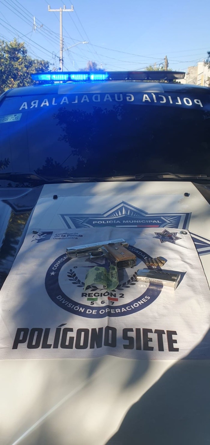 La Comisaría de Seguridad Pública de Guadalajara detuvo y neutralizó a un sujeto que apuntó en contra de un policía y que previamente amenazó a un taxista y lo despojó de su celular y dinero. Esto en la colonia Miguel Hidalgo.El reporte fue alrededor de las 7:30 horas en el cruce de avenida José María Iglesias y Gaza, donde los oficiales municipales con el Operativo Puma observaron al sospechoso amagando al trabajador del volante.“Se tiene un detenido mayor masculino se le aseguró un arma de fuego, la persona venía como pasajero de una persona que trabaja de taxista, le pidió un punto para bajar, ahí lo amagó con un arma de fuego y lo despoja de 200 pesos y un celular, lo llevó privado de la libertad unos momentos antes, con el Operativo Puma lo detectamos, al ver la presencia de los oficiales es cuando emprende la huida y el sujeto apuntó contra un compañero con la intención de lesionarlo y repelió la agresión a raíz de la neutralización la persona recibió dos impactos de arma de fuego en la pierna derecha, el taxista se encuentra bien”, Miguel Castellanos Camacho, Comisario de la Región 2 de la Policía de Guadalajara.Al sitio acudió un agente del Ministerio Público quien abrió una carpeta de investigación por el hecho delictivo.FS