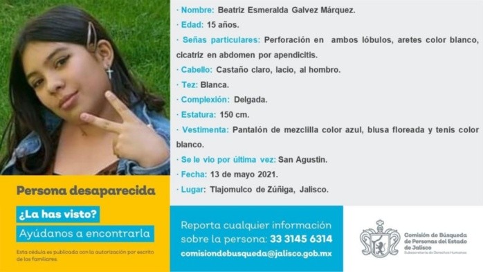 Sin informar el lugar o las condiciones en las que fue localizada, la Fiscalía del Estado confirmó este miércoles que otra de las menores que fueron reportadas como desaparecidas desde el pasado 13 de mayo, tras escapar de un albergue en Tlajomulco, ya fue encontrada.Se trata de Gloria Martínez, de 16 años, quien al momento de su desaparición vestía una blusa amarilla, pants y tenis negros.Con ella son dos las jóvenes localizadas. La Fiscalía dio a conocer que otra menor fue encontrada el pasado domingo 16 de mayo en el estado de Michoacán, de manera extraoficial se supo que se trata de Flor de Kenia Nuño, de 14 años.De acuerdo con lo informado ese día por la dependencia estatal, tras escapar del albergue en el que estaba recluida, la joven se dirigió a casa de sus familiares, quienes para resguardarla la enviaron al vecino estado con una hermana, informando a las autoridades que se encuentra en buen estado de salud.En el caso de Gloria, la dependencia solo dio a conocer que “se obtuvieron datos de prueba que permitieron ubicar a una persona la cual mantenía contacto con la joven, por lo cual se llevaron acciones que permitieron la ubicación de la adolescente”, sin dar más detalles al respecto, además de indicar que se encuentra en buen estado de salud.Hasta el momento las fichas de búsqueda de estas jóvenes permanecen activas ante la Comisión de Búsqueda de Personas del Estado de Jalisco, es decir, no se ha informado de su localización.Todavía quedan pendientes de ser encontradas Beatriz Esmeralda Gálvez de 15 años, y Roxana Dávalos Nuño de 16. De acuerdo por lo informado por las autoridades estatales desde que se hizo de conocimiento este caso, las cuatro escaparon por una barda de la parte trasera del albergue y fueron los vecinos quienes informaron al mismo sobre lo ocurrido. Posteriormente se presentaron las denuncias correspondientes ante la Fiscalía Especializada en Personas Desaparecidas.El día de ayer se dio con el paradero de las adolescentes Marisol y Karla, quienes estaban reportadas como desaparecidas desde el pasado 16 de mayo, en Tlajomulco de Zúñiga.“Las menores de edad, salieron de sus respectivos domicilios ubicados en el municipio de Tlajomulco de Zúñiga, el pasado domingo 16 de mayo, y en ese momento, dijeron a sus familiares que iba a casa de su amiga, sin embargo, al pasar el tiempo sus familiares se percataron de que nunca fue así, por lo que de inmediato fueron reportadas como desaparecidas”, detallaron las autoridades.A través de las acciones de Rastreo Remoto, se estableció la hipótesis de que las jóvenes podrían estar en la Ciudad de México, por lo cual, se solicitó el apoyo de la Comisión Local de Búsqueda de esa entidad, para confirmar la localización.Después de un despliegue operativo se logró ubicarlas en buen estado de salud y se dio aviso a la Comisión de Búsqueda de Personas de Jalisco y a la Fiscalía Especial en Personas Desaparecidas jalisciense, para dar paso a los trámites legales correspondientes.Las autoridades piden a la población que en caso de tener información que ayude a dar con la localización de cualquier persona desaparecida, se comunique a la línea telefónica 33 3144 6314 o el 800 7188 086 las 24 horas del día.La Comisión de Búsqueda de Personas del Estado de Jalisco se encuentra ubicada en Calzada de las Palmas No 30, Colonia La Aurora.NR