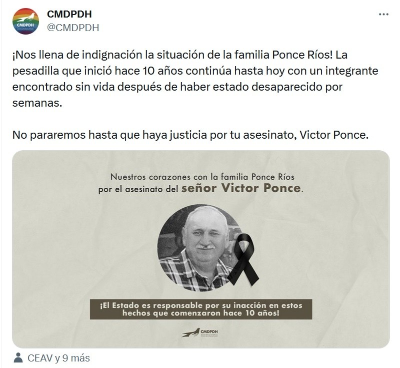 El pasado 23 de mayo, el ganadero Víctor Manuel Ponce y su trabajador, Luis Fernando García, fueron desaparecidos de su lugar de trabajo, en un rancho de Huejúcar, Jalisco. Tras ello, los familiares pidieron su localización con vida, sin embargo, dieron a conocer que ya se encontraron los cuerpos de las personas.A través de sus redes sociales, Anais Ponce agradeció el apoyo y dijo que “solo les quiero decir que si nos uniéramos lograríamos cambiar el país en el que cada día mueren personas inocentes”. Mientras que la Comisión Mexicana de Defensa y Promoción de los Derechos Humanos emitió un mensaje de apoyo y remarcó que “¡Nos llena de indignación la situación de la familia Ponce Ríos! La pesadilla que inició hace 10 años continúa hasta hoy con un integrante encontrado sin vida después de haber estado desaparecido por semanas. No pararemos hasta que haya justicia por tu asesinato, Víctor Ponce”. Trascendió que el ganadero había migrado de Chihuahua también por situaciones de violencia. Por su parte, la Fiscalía de Jalisco informó que trabaja de manera coordinada con su homóloga de Zacatecas en el intercambio de información para la posible identificación de dos personas que fueron localizadas sin vida en ese Estado, quienes al parecer cuentan con denuncia por desaparición en el municipio de Huejúcar.“De manera preliminar se informa que se encontraron coincidencias con las características físicas de Víctor Manuel, de 57 años de edad, y Luis Fernando, de 24 años. Las víctimas fueron vistas por última vez en Huejúcar, Jalisco, el pasado 23 de mayo cuando acudieron a trabajar a un rancho, propiedad de uno de ellos”, destacó la dependencia estatal.Indicaron que la Fiscalía Especial en Personas Desaparecidas (FEPD) tomó conocimiento de la denuncia que presentó su familia, el pasado 30 de mayo, y se desplegaron de manera inmediata trabajos de inteligencia, operativos, acciones de búsqueda remotas, entrevistas y se giraron diversos oficios a instituciones para la coadyuvación en la búsqueda.“A la par de los trabajos de investigación, la FEPD ha mantenido mesas de trabajo con las familias de las víctimas con la finalidad de mantenerlas actualizadas sobre los avances de las pesquisas, mismas que continúan para el esclarecimiento de los hechos. Se reitera que la información proporcionada es de carácter preliminar y conforme se cuente con información que haga llegar la Fiscalía General de Justicia del Estado de Zacatecas, se podrán conocer más detalles al respecto y se darán a conocer a través de los canales oficiales de esta representación social”. JM