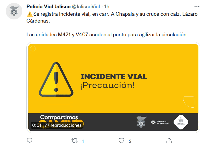 Un hombre murió luego de ser atropellado en carriles de carretera a Chapala, casi al cruce con la calle Plan de San Luis, en las inmediaciones del fraccionamiento Revolución.El accidente registrado esta mañana habría sido provocado por la imprudencia al cruzar del hombre que, según versiones de testigos, vivía en condición de calle.Debido al percance y los cierres provocados se registró fuerte tráfico vehicular en la zona y circulación lenta en el punto y a los alrededores.En sus redes sociales, la Policía Vial reportó que a la zona llegaron elementos a bordo de las unidades M421 y V407 para ayudar a agilizar la circulación.No se proporcionó información sobre la identidad de la víctima, ni de detenidos por este hecho.GC