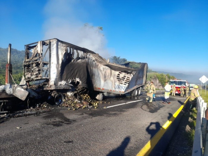 Un tráiler que transportaba atún enlatado se incendió esta mañana en el municipio de Zapotlán del Rey.La Unidad Estatal de Protección Civil y Bomberos de Jalisco informó que el siniestro se registró en la autopista Guadalajara - Morelia, a la altura del kilómetro 497.Según reportaron, el fuego se inició en el motor por una aparente falla mecánica y luego se propagó al resto del tractocamión. En total, el vehículo transportaba 10 toneladas de atún enlatado.El incendio ya fue controlado, reportaron autoridades estatales quienes contaron con el apoyo de bomberos de Zapotlán del Rey y del municipio de Poncitlán.No hubo personas lesionadas y el conductor fue resguardado, sin ninguna afectación a su salud.FS