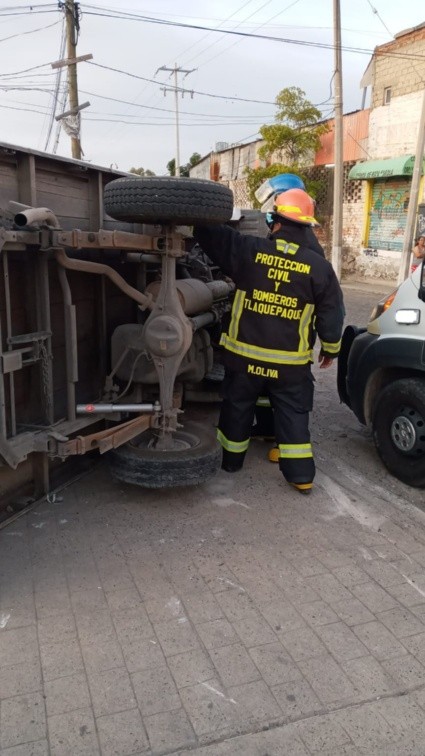 La volcadura de una camioneta de carga, ocurrida en el municipio de Tlaquepaque, dejó como saldo 11 personas lesionadas.Los hechos sucedieron en el cruce del Periférico y la calle López Mateos, en la colonia Las Liebres.Fue ahí donde una camioneta de carga, en la cual viajaban 16 personas, algunas de ellas en la caja, volcó sobre su costado izquierdo y quedó encima de la banqueta.Debido al hecho 11 personas resultaron lesionadas, según el reporte de las autoridades municipales. De ellas, al menos dos fueron trasladadas en estado regular a una clínica del IMSS para su mejor atención.Hasta el momento se desconocen las causas por las cuales el conductor perdió el control del vehículo y volcó. Al punto acudieron al menos cuatro ambulancias de Servicios Médicos Municipales para apoyar en la valoración de los lesionados.Personal de Protección Civil y Bomberos de Tlaquepaque y elementos de la Policía Vial de la Secretaría de Seguridad.Si te interesó esta noticia y quieres saber más, entonces descarga y descubre INFORMAPlus, la aplicación digital de EL INFORMADOR, en donde tenemos contenidos exclusivos, seleccionados por nuestros editores, para darles una experiencia más completa a los lectores.Descarga la aplicación y pruébala GRATIS por treinta días.Para iOS: https://apple.co/35jaVgbPara Android: https://bit.ly/3gwVSEVSi eres suscriptor de EL INFORMADOR tu acceso está incluido, solicítalo al 33 3678-7777GC