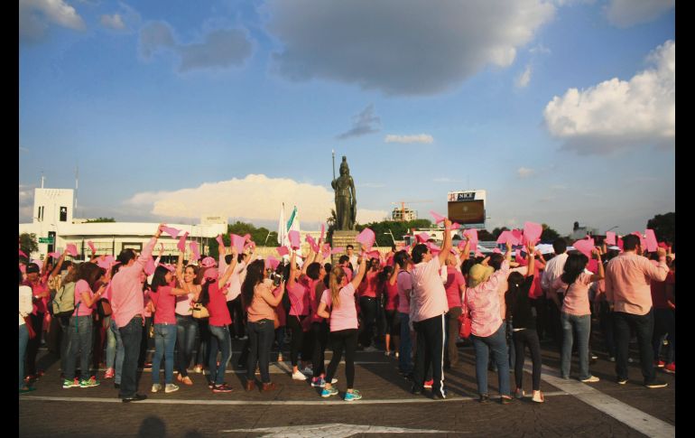 Los tapatíos salieron ayer a las calles para visibilizar la trata de personas, para realizar acciones de concientización sobre el cáncer de mama y para exigir, una vez más, que se retire la escultura “Sincretismo”.Unos 600 convocados por la organización A21, que cada 14 de octubre marcha para pedir un alto a la trata, partieron a las 11:20 horas de la Glorieta de los Niños Héroes y llegaron hasta la Minerva.Acompañados por elementos de la Secretaría de Movilidad (Semov), portaron una mordaza amarilla para simular la privación de la libertad que viven las víctimas de este delito.Alrededor de las 17:00 horas, Jalisco rompió el Récord Guinness a la lazada más grande del mundo: 16 mil se entrelazaron entre el monumento de la Minerva y las avenidas Vallarta y Circunvalación Agustín Yáñez. Esta acción formó parte de una campaña pública para informar sobre el cáncer de mama.En el evento participaron miembros de la sociedad civil, sobrevivientes de esta patología, trabajadores de universidades, de los Hospitales Civiles y del Gobierno estatal. El secretario de Salud estatal, Antonio Cruces Mada, dio a conocer que en lo que va del año se han detectado en la Entidad mil 315 casos de cáncer de mama.A las 16:45 horas, un grupo de mil 500 personas salió del templo de El Refugio hacia la escultura “Sincretismo”, de Ismael Vargas, que desde el 14 de agosto está en el camellón de Federalismo a su cruce con Hospital. Voceros católicos aseguraron que este tipo de acciones seguirán hasta que la quiten o la destruyan, pues la consideran una ofensa para su fe.