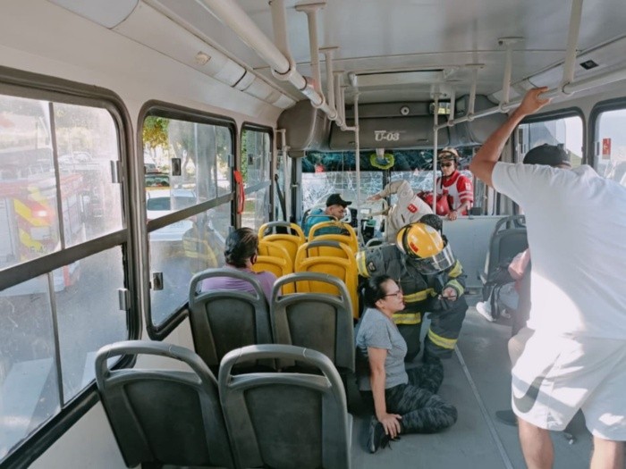 La tarde de este jueves se registró un accidente vial entre un camión de transporte público de la ruta T-07 y una camioneta de carga de tres toneladas. Los hechos ocurrieron en el cruce de Calle Bélgica y España, en la Colonia Moderna.Como saldo del accidente, tres mujeres mayores de edad resultaron con esguince y dolor cervical. Además, el chofer del transporte publico también tuvo lesiones. Servicios médicos aún valora a los demás pasajeros para determinar si sufrieron afectacioes.