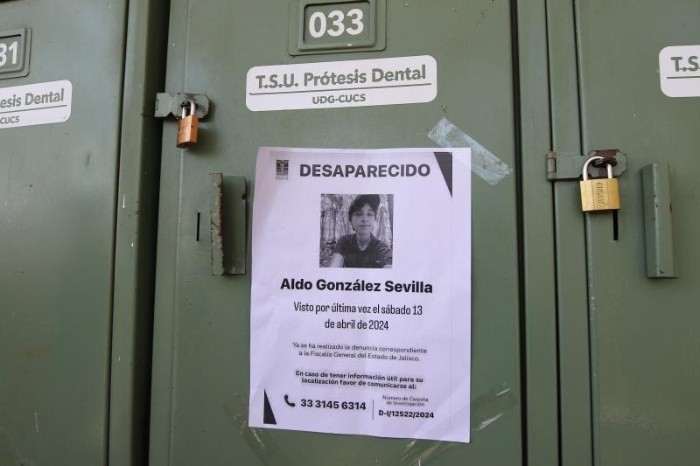 Para exigir a las autoridades la localización con vida del estudiante Aldo González Sevilla, el Centro Universitario de Ciencias de la Salud (CUCS) paró sus actividades para realizar una protesta dentro de sus instalaciones.El rector del CUCS, José Francisco Muñoz Valle, junto con la presidenta de la Federación de Estudiantes Universitarios (FEU), Zoé García, encabezaron la concentración que detuvo las labores en el plantel durante un hora. “Nos falta Aldo González. Exigimos a las autoridades que se pongan a hacer su trabajo más rápido. Es un alumno brillante. No es posible que todos los días estemos pensando que nuestros alumnos salgan de su casa y no sepamos si van a regresar. Es muy importante que tengamos seguridad en el estado y el país. Tenemos miedo de salir, de ir a nuestro trabajo, de hacer lo que nos gusta hacer”, explicó el Rector.“Esto no lo podemos seguir viviendo, siempre estamos preocupados que nuestro alumnos lleguen al centro y no les roben la cartera, el celular, requerimos de las autoridades, hemos tenido que hasta modificar nuestro horarios de ingreso. Exigimos seguridad para nuestros alumnos y personal de nuestra comunidad, la única preocupación de nuestros jóvenes debería ser estudiar”, añadió Muñoz Valle.La líder estudiantil anunció que mañana están convocados los otros centros universitarios de la UdeG a parar sus actividades al mediodía, como parte de las protestas por la desaparición del alumno de segundo semestre de la carrera Técnico Superior Universitario en Prótesis Dental. “Son 22 estudiantes de la UdeG, que siguen sin localizarse, necesitamos encontrarlos, esta es una exigencia contundente al Gobierno de Jalisco y a la Fiscalía, que son responsables de la seguridad, que se pongan a hacer su trabajo, que actúen, que investiguen y lo encuentren”, dijo Zoé García.González Sevilla fue visto por última vez el 13 de abril cuando salió de su casa en Guadalajara rumbo a la Central Camionera para ir a Tepatitlán, donde vive su familia. EE