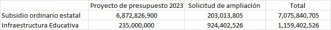 Para hacer frente al impacto de la inflación, el incremento de la matrícula de estudiantes, los proyectos de nuevos centros universitarios y preparatorias, la Universidad de Guadalajara (UdeG) requiere de mil 127 millones de pesos (MDP) más de lo que le etiquetaron en el proyecto estatal de presupuesto 2023, informó el rector Ricardo Villanueva Lomelí.El dirigente universitario sostuvo que no hay razones técnicas, ni financieras para que mientras el gasto estatal crece 15.55%, a la UdeG sólo le aumenta 5.49 por ciento. Reiteró que el impacto de la inflación ha sido superior a lo estimado y que el incremento planteado no alcanza para cubrirlo."Nos faltan 203 millones y ellos están repartiendo 21 mil millones, es totalmente viable estabilizar el subsidio ordinario de la Universidad, para el crecimiento presupuestal que está teniendo Jalisco, estos 203 millones me parecen poco; pero eso es lo que pedimos y con eso estabilizamos el crecimiento de la red universitaria", detalló.Añadió que para infraestructura educativa requieren 924.4 MDP adicionales a los 235 millones que les etiquetan en el proyecto de gasto estatal.Villanueva Lomelí consideró que el gobernador engaña estadísticamente al decir que la administración estatal cumple al dar los recursos que le corresponden por el convenio con el Gobierno Federal de aportar 42 y 58%, respectivamente; también sostuvo que omite el maltrato presupuestal de la Federación a las instituciones de educación superior con menor inversión y sin cubrir la inflación, pues recordó que en el gasto por estudiante, la UdeG tiene el segundo peor presupuesto federal con 21 mil 188 pesos por alumno."Si el gobernador dice que da el 48% que le corresponde por el convenio con la Federación, eso significa que nos condena a que tenemos el segundo peor presupuesto por alumno del país, eso es por lo que decimos que el referente no debe ser el 52-48 por ciento. Esto es engañar con la verdad, no se debe ver el presupuesto de la Universidad desde un sólo indicador, se debería de basar en cuántos jóvenes están demandando un espacio, hemos crecido gracias a que otros gobernadores han dado más del 48 por ciento", dijo.Villanueva Lomelí advirtió que el bajo crecimiento presupuestal pone en riesgo proyectos como los Centros Universitarios de Chapala, Tlajomulco, Tlaquepaque, Tonalá y el de La Normal, además de tres nuevas preparatorias en la Zona Metropolitana de Guadalajara (ZMG). Comentó que podría no concretarse la habilitación de 60 mil 500 nuevos espacios en los próximos 5 años y mantener la cobertura de 100% en educación media superior."Este es el peor sexenio de todos los gobernadores desde que se creó la red universitaria, a la Universidad de Guadalajara le costará décadas superar los efectos de las pésimas decisiones que está tomando el gobernador en caso de que consolide el presupuesto como lo están planteando", aseveró.GC