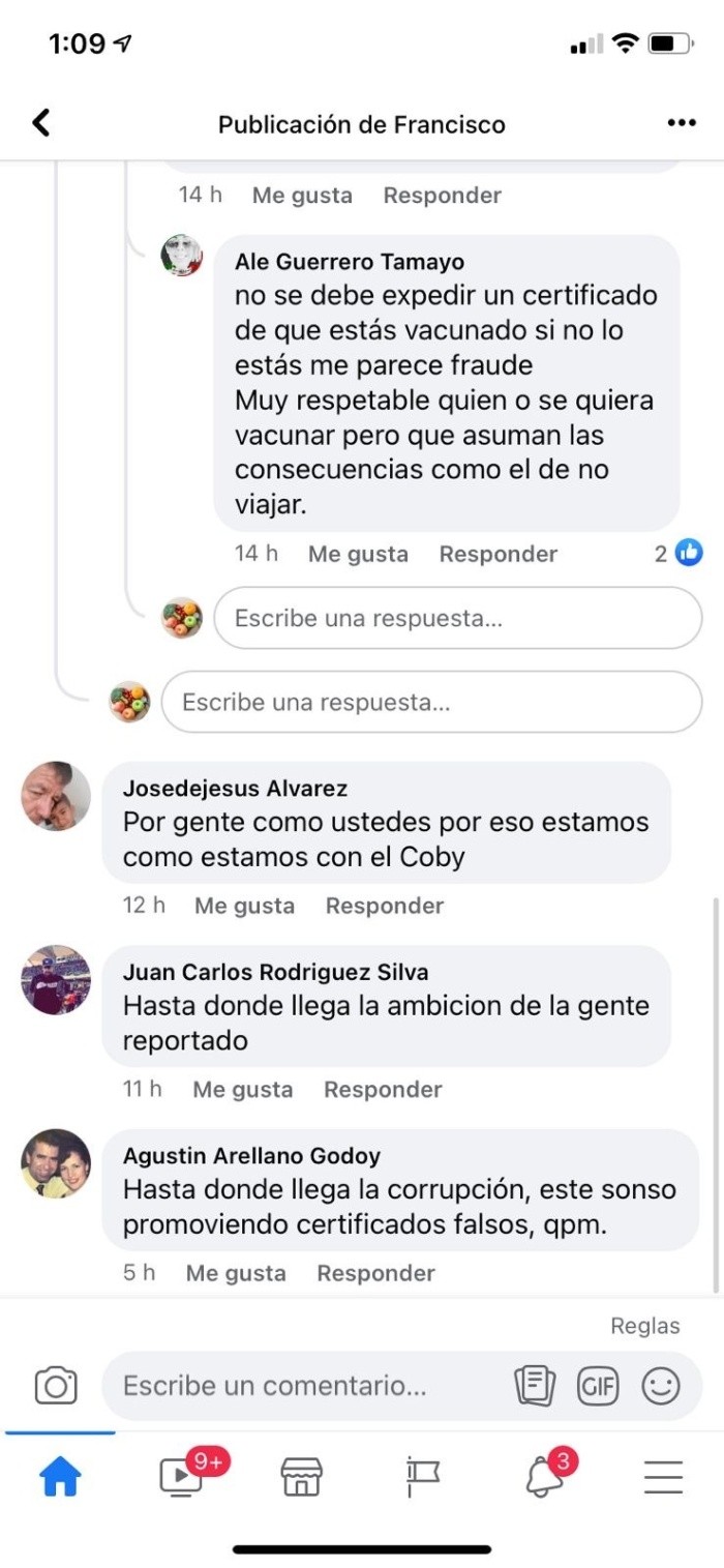 Aunque sólo debería emitirlos el Gobierno federal y son gratuitos para las personas que hayan completado su esquema de inmunización, diferentes usuarios de redes sociales ofrecen a la venta de manera irregular certificados de vacunación contra el COVID-19.El documento lo promueven en espacios como Facebook a un costo de hasta 300 pesos.“Pido un anticipo de 200 para asegurar mi trabajo. Los certificados ya están dados de alta ante la Secretaría de Salud y el QR sale con tus datos. La entrega la hago personal o te lo mando por archivo PDF”, respondió Frida EG, una vendedora en esa red social.Arce Francisco, otro vendedor, escribió que “este servicio es para la gente que le urge salir de viaje a otro país. Se le hace el registro sin necesidad de asistir a la vacuna o simplemente es para personas que no se quieren vacunar”.En el grupo “Santa Mago, Zapopan, Ventas”, lo ofrecen desde 100 pesos. La publicidad remarca: “Sin cita, sin vacuna, sin pagos anticipados”.También hay miembros de la red social que reprueban la acción, tal es el caso de Ale Guerrero quien comentó: “No se debe de expedir un certificado de que estás vacunado, si no lo estás, me parece fraude, muy respetable quien quiera o no vacunarse, pero que asuman las consecuencias como la de no viajar”.El Artículo 243 del Código Penal Federal refiere que la falsificación de documentos públicos se sanciona con hasta 12 años de prisión, además de multa.La página web oficial del Gobierno federal donde se puede obtener legalmente el certificado de vacunación cuando se cuenta con las dosis correspondientes contra el coronavirus es https://cvcovid.salud.gob.mx/ o por WhatsApp al número 56 1713 0557. Es gratuito y el proceso dura tres minutos.MQ