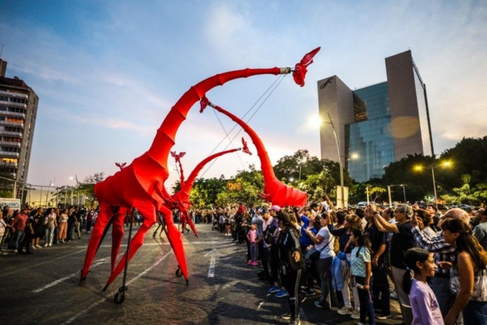 El sol se escondía por detrás de los edificios que resguardan la Glorieta Minerva. Algunos trémulos rayos de luz se colaban entre los asistentes quienes, impacientes, alzaban la vista hasta donde los ojos alcanzaran. De pronto, “Les Girafes”, siete marionetas de ocho metros de altura, engalanaron las faldas de la guardiana de la ciudad, ante el asombro de su público, rendido a sus patas. Las jirafas gigantes, ataviadas con un intenso color rojo, resplandecían al contacto de las luces con su cuerpo. Se abrían paso entre la gente, dando zancadas imponentes que retumbaban, como un eco sonoro, en avenida vallarta. A su andar, los más pequeños, maravillados, hundían sus brillantes ojos en ellas. Cristóbal Sandoval, de 11 años, contó su experiencia. “Se me hace muy chido, muy genial. Lo que más me gustó es que hicieran como que estaban comiendo las hojas de los árboles, como las jirafas”. Después de correr tras ellas, se acomodó en su asiento en primera fila, sobre la banqueta. Comía un dulce de leche, pero su mirada estaba en otro lado: seguía el andar de las jirafas.El espectáculo, a cargo de la compañía Off Compagni de Francia, estuvo acompañado por actores, acróbatas, bailarines, músicos y una soberbia cantante de opereta. Ella, con su potente voz y gráciles ademanes, despertaba en los asistentes aplausos estruendosos y gritos desaforados. Al final, con los Arcos a sus espaldas, dio fin a “Les Girafes” al desfallecer en su asiento, tras la extenuante armonía con la que decoró a la Minerva.Diana Martínez, acompañada de su esposo y su hijo, destacó que, además de ser artístico, el evento era familiar. “Un ambiente muy bonito para venir a pasar un rato en familia. Y en la Minerva ni se diga, de los mejores lugares en la ciudad”.“Les Girafes” es el evento de cierre del Festival Cultural Permanente LATE. Carlos González, director de Cultura de Guadalajara, resaltó que durante el festival, que se llevó a cabo a lo largo del año, se realizaron alrededor de ocho mil actividades culturales en toda la ciudad, con la participación de seis mil artistas e impactando a más de 400 mil personas. El evento de anoche reunió a alrededor de 10 mil personas, según Protección Civil y Bomberos del municipio.En tanto, las jirafas tendrán sus últimas dos funciones este domingo 23 de noviembre a las 11:00 horas en la Glorieta Minerva, en conjunto con la Vía RecreActiva, y a las 17:00 horas en Paseo Alcalde.“Ha sido un año muy importante para poner a la cultura como una prioridad en la ciudad [...]. Es un festival que nos hace imaginar a la ciudad como un escenario vivo”, comentó González.SV