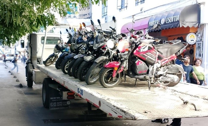 Por diversas infracciones a la Ley de Movilidad, Seguridad Vial y Transporte del Estado de Jalisco, elementos de la Policía Vial, a través de un operativo, aseguraron 74 motocicletas en el Centro Histórico de Guadalajara.