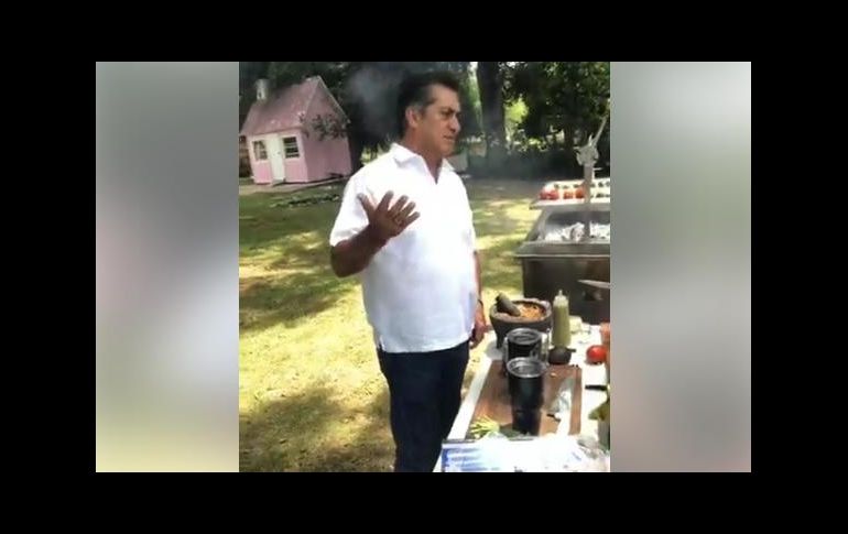 El candidato independiente, a la Presidencia, Jaime Rodríguez Calderón, "El Bronco" organizó en su casa de García Nuevo León una "carne asada a calzón quitado" con amigos parrilleros del estado.Por medio de una transmisión, por Facebook Live, Rodríguez Calderón compartió sus secretos para hacer una salsa molcajeteada.También cortó una docena de tomates cherry que, dijo, le servirán para el almuerzo."El Bronco" se reunió con el grupo T-Raza Regia, un colectivo de jóvenes de Nuevo León, que se juntan para hacer carne asada, cabrito y parrilladas.Entre cerveza y cerveza, "El Bronco" les platicó su proyecto para vencer a la partidocracia, así como sus propuestas de mocharle la mano a los políticos corruptos o pena de muerte para secuestradores, asesinos y violadores.JB