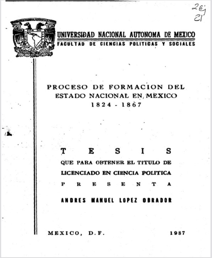 El Instituto Nacional de Transparencia, Acceso a la Información y Protección de Datos Personales (Inai) aprobó ordenar a la Universidad Nacional Autónoma de México (UNAM) hacer pública la tesis y el título universitario del Presidente Andrés Manuel López Obrador, decisión que ha cobrado relevancia en redes sociales debido a que ésta ya era pública desde hace tiempo.El Inai resolvió un recurso de revisión interpuesto por un particular que solicitó los datos, pero que le fueron negados bajo el argumento de ser clasificados.Tras la decisión del Inai, usuarios de redes sociales recordaron que la tesis del Presidente López Obrador "lleva años siendo pública", e incluso compartieron el link donde se puede consultar.Usuarios de Twitter compartieron el link que lleva a la tesis de López Obrador, así como imágenes para comprobar la veracidad del documento."Ya no tienen qué investigar nada, INAI, aquí está la tesis de #AMLO, y, ¿qué creen?, ¡lleva años siendo pública! http://132.248.9.195/pmig2018/0047758/index.html", se lee en un post.En el link, se despliega la página oficial del Departamento de Tesis de la UNAM con el trabajo de investigación del Presidente.La tesis "Proceso de Formación del Estado Nacional en México 1824-1867", cuenta con un total de 176 páginas y cuatro capítulos sobre la historia del país, los cuales se pueden leer en línea en cualquier momento.Los capítulos que contiene la tesis son:JM