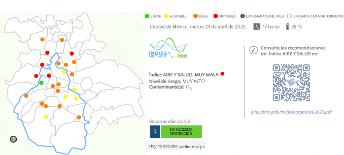 La Comisión Ambiental de la Megalópolis (CAMe) activó la Fase 1 de contingencia ambiental por ozono, con el objetivo de disminuir la exposición de la población al aire contaminado y el riesgo de la afectación a su salud, por lo que para el miércoles 2 de abril del 2025, se aplica el Doble Hoy No Circula en la Zona Metropolitana del Valle de México. A través de un comunicado la CAMe detalló que a las 16:00 horas del día de hoy, se registraron concentraciones de ozono de 166 ppb en la estación FES Acatlán (FAC), ubicada en Naucalpan de Juárez; 156 ppb en la estación Tlalnepantla (TLA), ubicada en el municipio del mismo nombre y de 155 ppb en la estación Camarones (CAM), ubicada en la Alcaldía Azcapotzalco, Ciudad de México.Mañana miércoles 2 de abril, deberán suspender su circulación, en horario de las 5:00 a las 22:00 horas los siguientes autos: NA