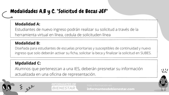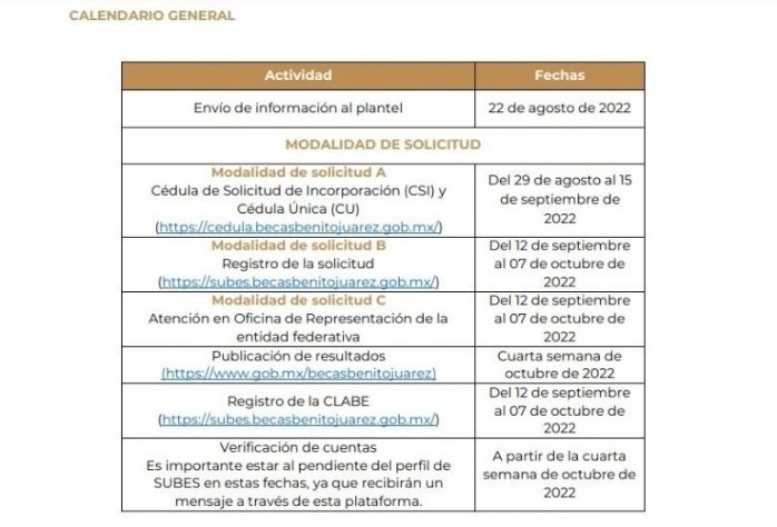 La beca Jóvenes Escribiendo el Futuro 2022-2023 está dirigida a los estudiantes de nivel superior en México y podrás registrarte a ella a partir del hoy y hasta el 7 de octubre.No obstante, es importante recordarte que tienes hasta el 15 de septiembre para tramitar tu Cédula de Solicitud de Incorporación (CSI). Sin ella, no podrás iniciar tu registro.Así que si eres estudiante de educación superior y estás en búsqueda de una beca para continuar tus estudios, aún puedes revisar la convocatoria de este Beca para el Bienestar Benito Juárez.Aquí te dejamos todos los detalles que necesitas saber para aplicar a este apoyo, así como los requisitos, monto de la beca y la publicación de los resultados.De acuerdo con Sistema único de Beneficiarios de Educación Superior (SUBES), para este 2022-2 de la beca universitaria Jóvenes Escribiendo el Futuro se crean 2 nuevas modalidades para poder solicitar la beca Jóvenes Escribiendo el Futuro, y son nombradas como modalidad A, B y C. No obstante, primero deberás de consultar con tu departamento escolar en qué modalidad se encuentra ubicada tu escuela. El registro para los estudiantes que deseen formar parte de la Beca Jóvenes Escribiendo el Futuro 2022-2023 estará abierto a partir de este 12 de septiembre y hasta el 7 de octubre, pero tienes hasta el 15 de septiembre para registrar tu Cédula de Solicitud de Incorporación (CSI). Si aún no la has tramitado, ¡date prisa!Las otras modalidades de inscripción estarán abiertas a partir de este 12 de septiembre.La publicación de resultados será a partir de la cuarta semana de octubre. El registro para esta beca podrá hacerse sólo a través del Sistema Único de Beneficiarios de Educación Superior (SUBES).La Cédula de Solicitud de Incorporación en Línea (CSI), que es una herramienta digital que te permitirá saber, en tiempo real, si el o la estudiante candidato para participar en el proceso de selección de los programas de becas.Lo puedes realizar en este link, sólo te tomará unos minutos, pero deberás tener a la mano:Tienes hasta el 7 de octubre para registrar tu CSI.El portal identificará tu centro educativo como 1) Prioritario, 2) Susceptible de atención, o 3) No susceptible de atención. Podrás ser acreedor a tu CSI para la beca solamente si tu escuela entra en la calidad de "Prioritario", o se reconsiderará si se cataloga en "Susceptible de atención".De acuerdo con información compartida por la Coordinación Nacional de Becas para el Bienestar Benito Juárez se dio a conocer que la nueva convocatoria para los estudiantes de educación superior que quieran formar parte de Jóvenes Escribiendo el Futuro deberán de cumplir con los siguientes requisitos:Asimismo, los estudiantes que pueden participar en esta convocatoria deberán ser alumnos de las siguientes escuelas:El monto del apoyo económico de la beca Jóvenes Escribiendo el Futuro es de 2 mil 450 pesos mensuales y, para este periodo, se otorgarán hasta 410 mil apoyos a los estudiantes que se encuentren inscritos en alguna Institución Pública de Educación Superior (IPES) considerada de cobertura total.